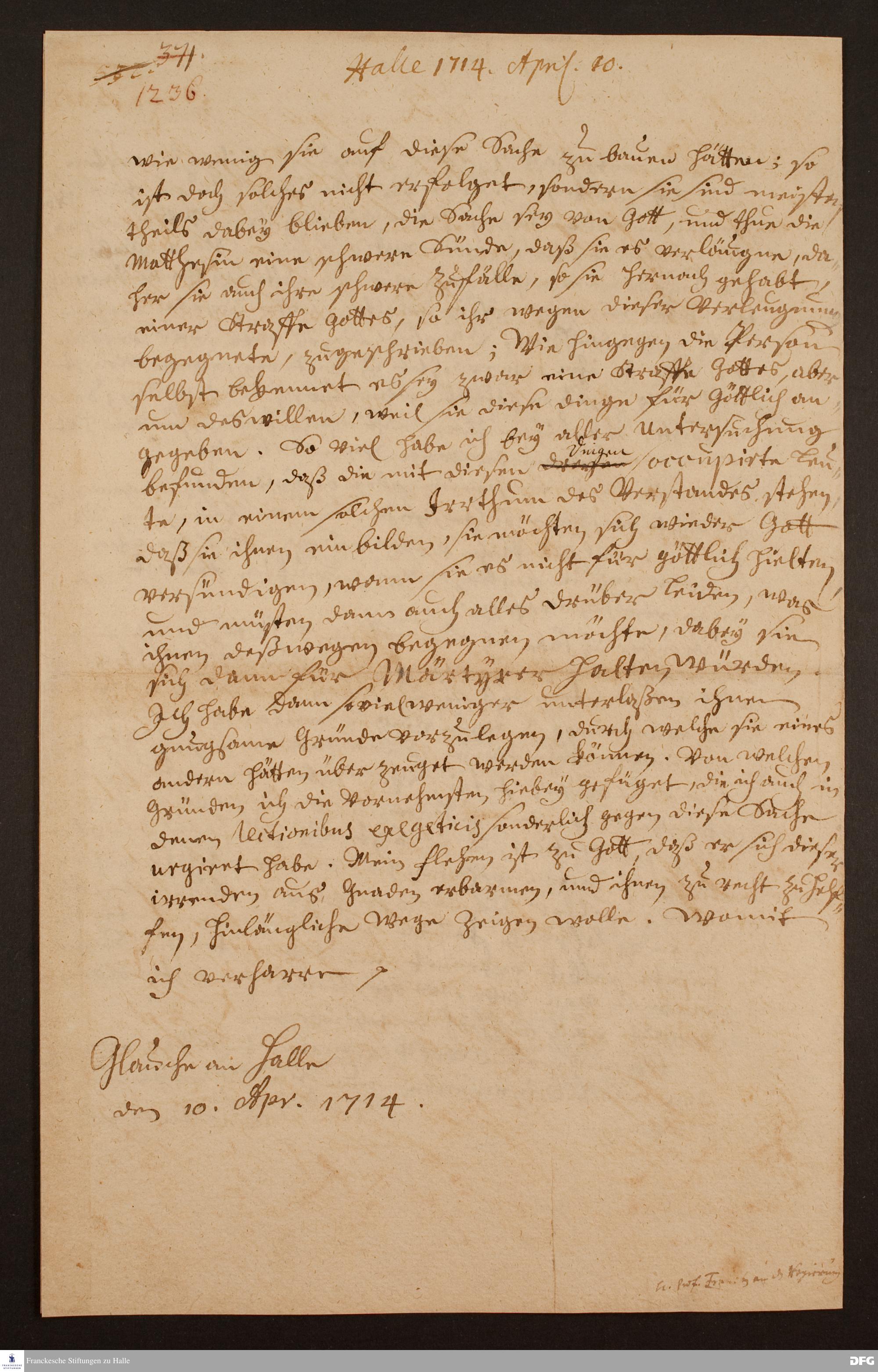 Brief von August Hermann Franckes an die Regierung und das Konsistorium des Herzogtums Magdeburg.