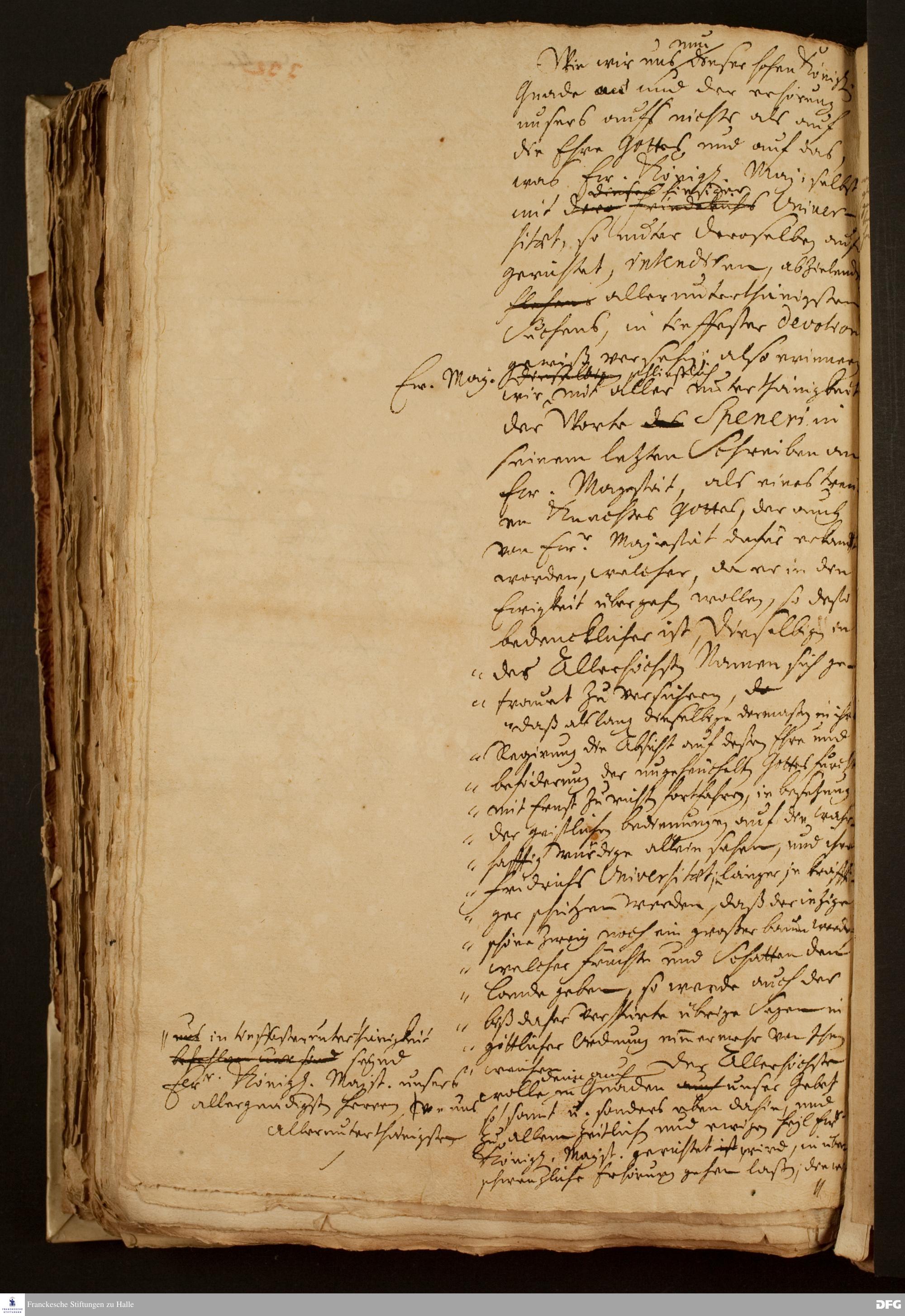 Teil eines Briefs von August Hermann Francke an Friedrich I., König in Preußen.