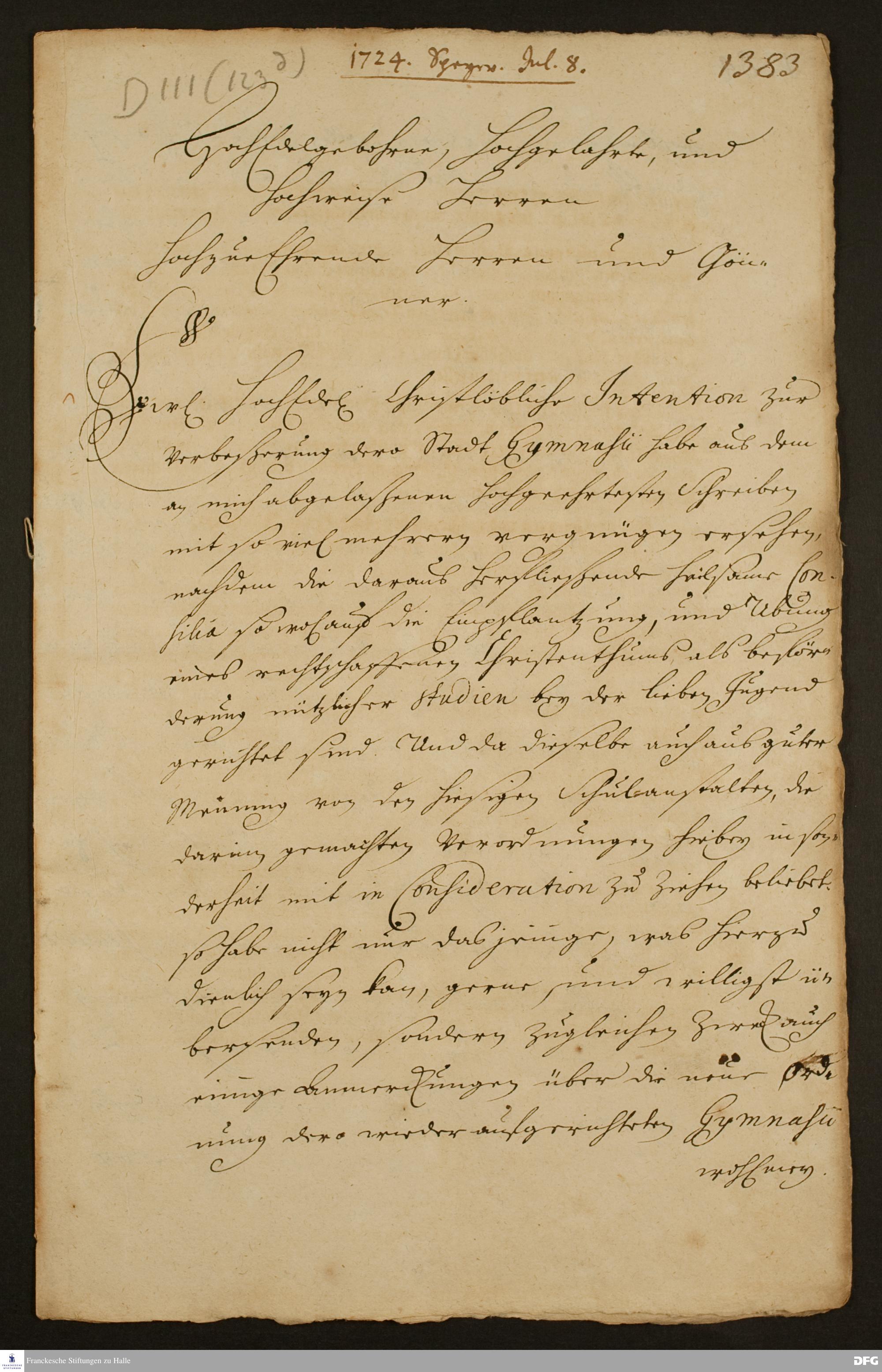 Brief von August Hermann Francke an den Rat der Freien Reichsstadt Speyer.