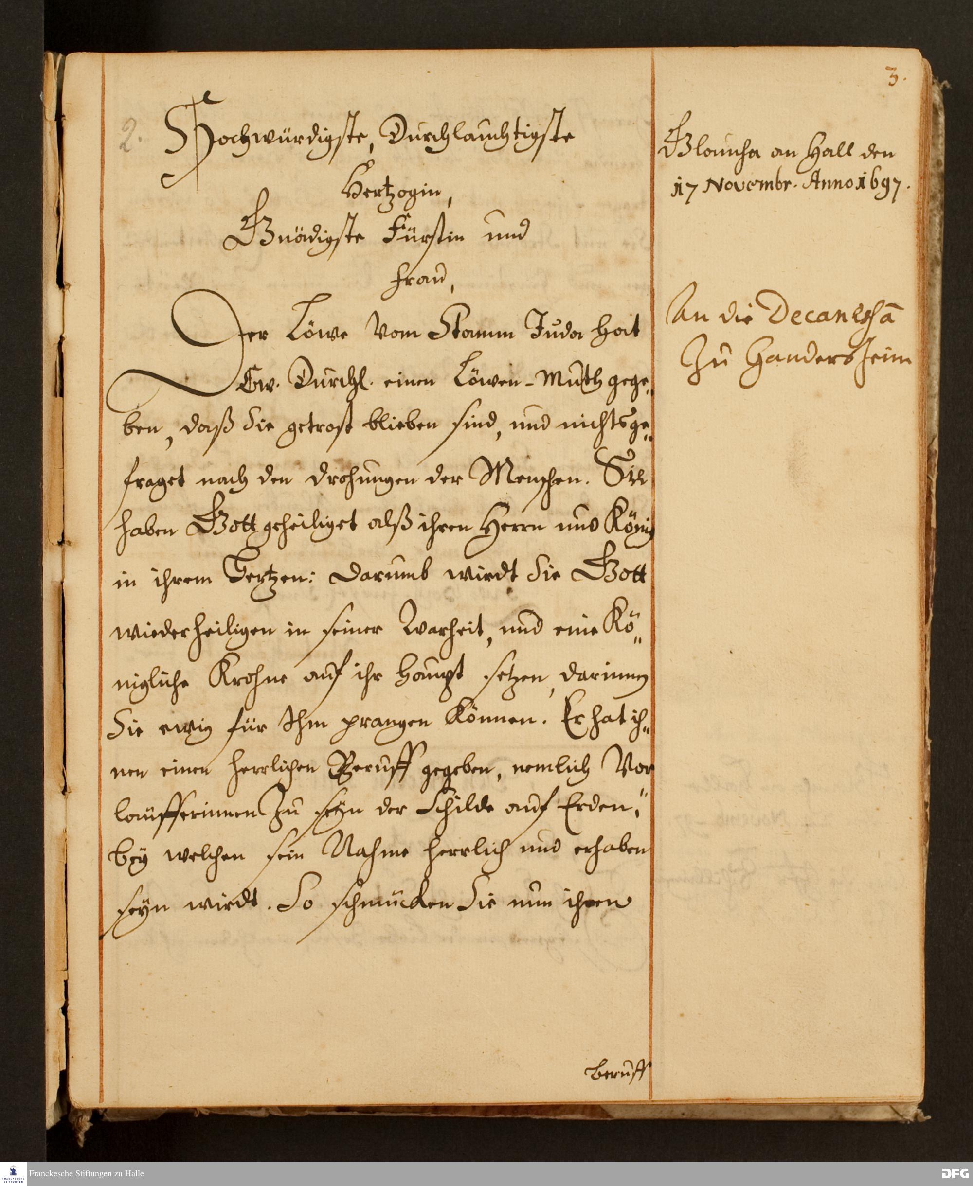 Brief von August Hermann Francke an Marie Elisabeth v. Mecklenburg-Schwerin.