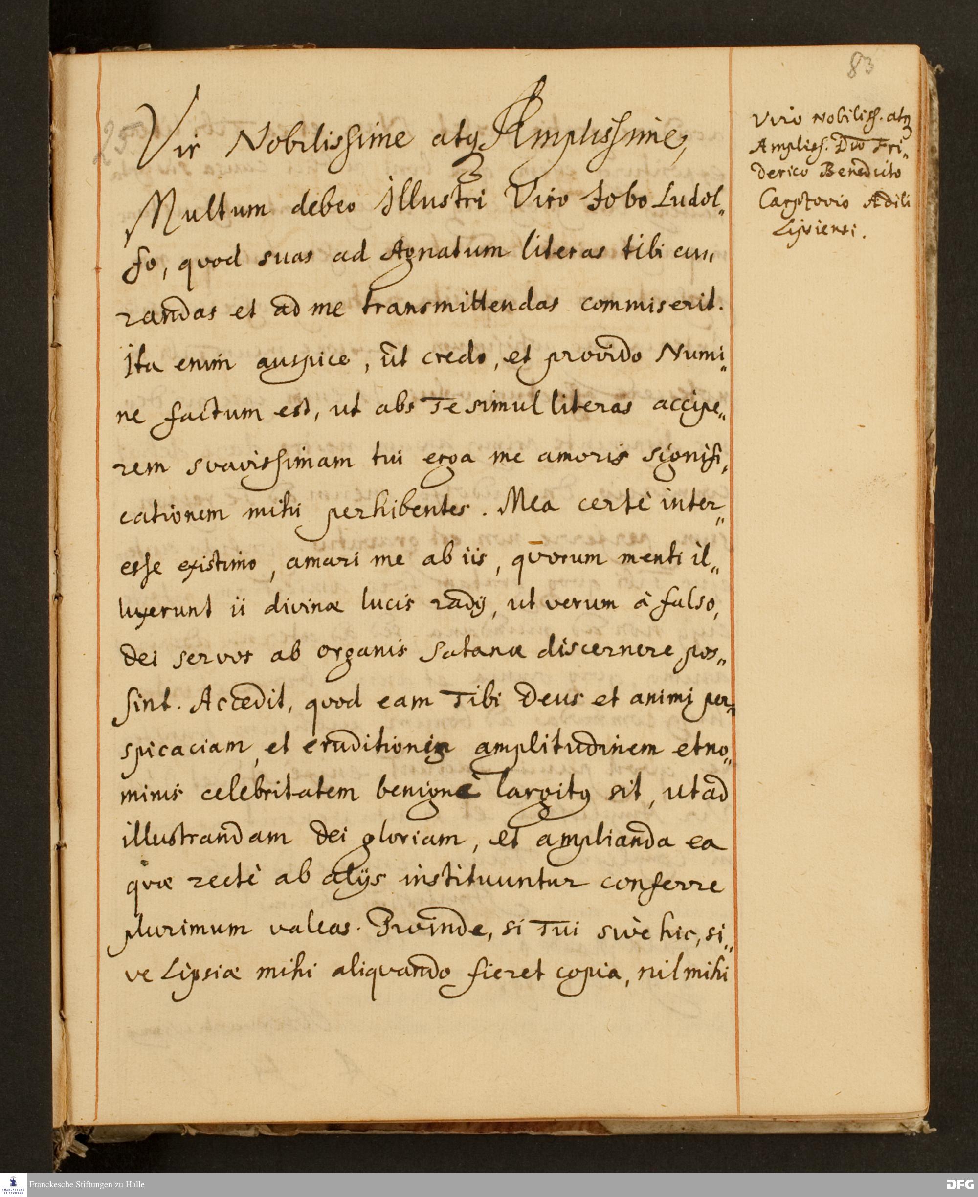Brief von August Hermann Francke an Friedrich Benedict Carpzow.