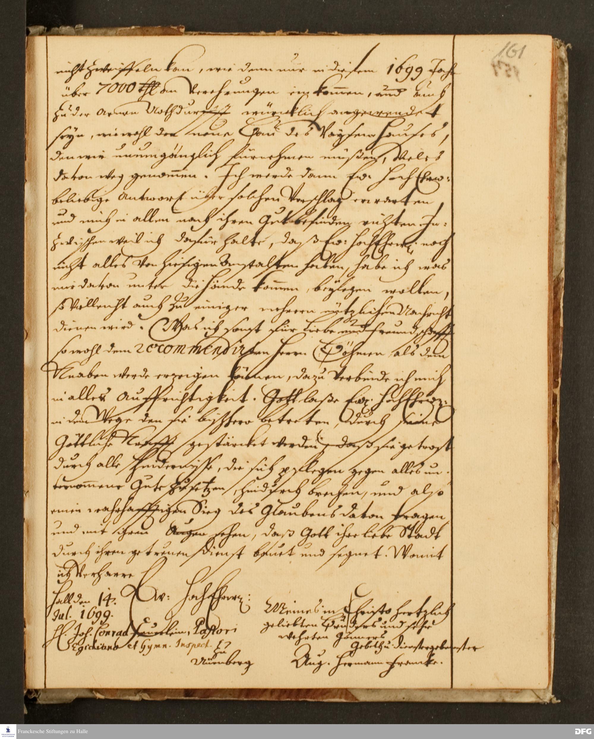 Brief von August Hermann Francke an Johann Conrad Feuerlein.