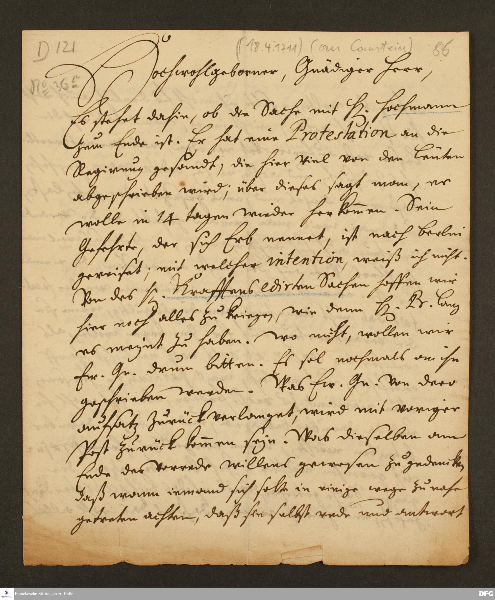Brief von August Hermann Francke an [Carl Hildebrand v. Canstein].