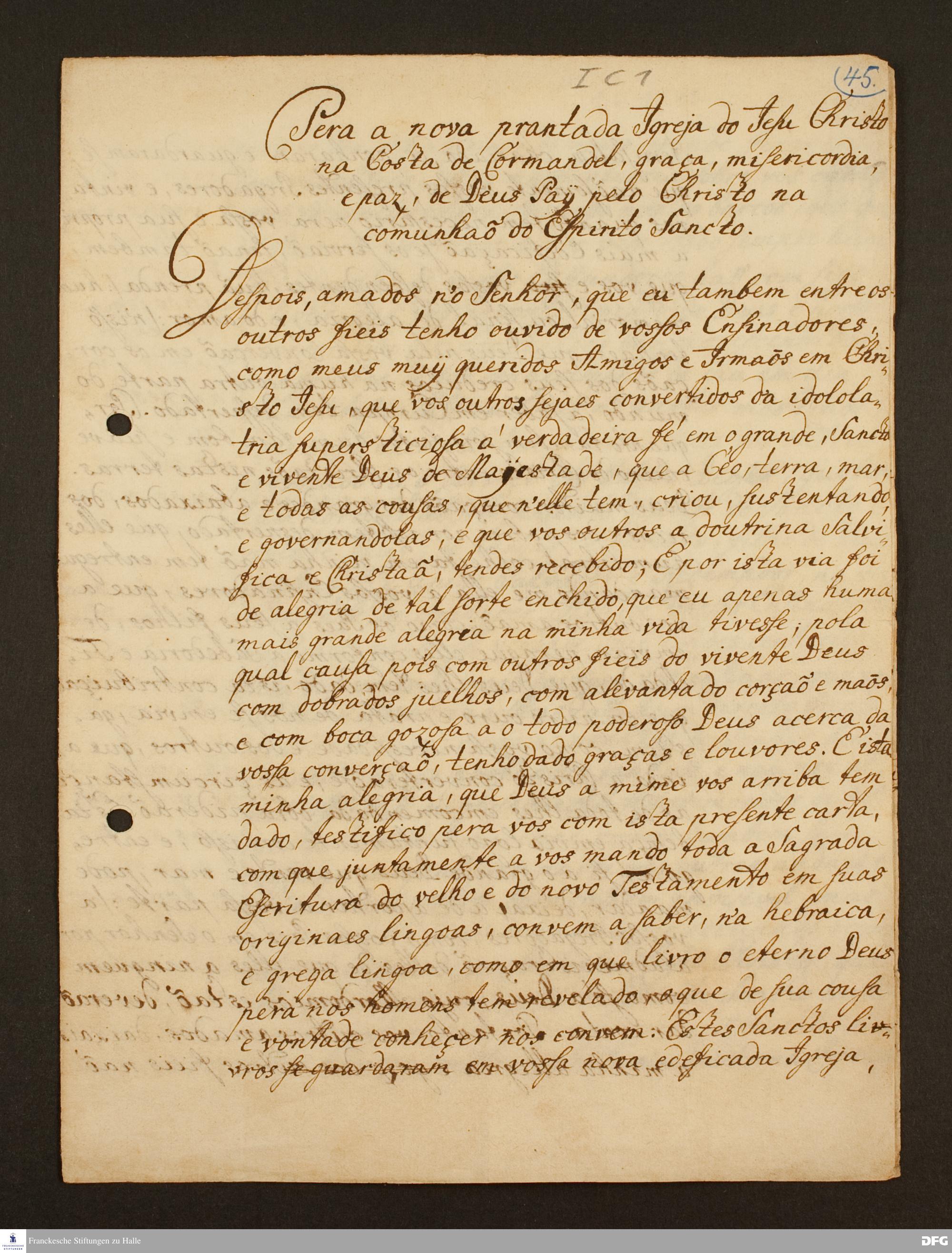 Brief von August Hermann Francke an [die Gemeinde in Tranquebar].