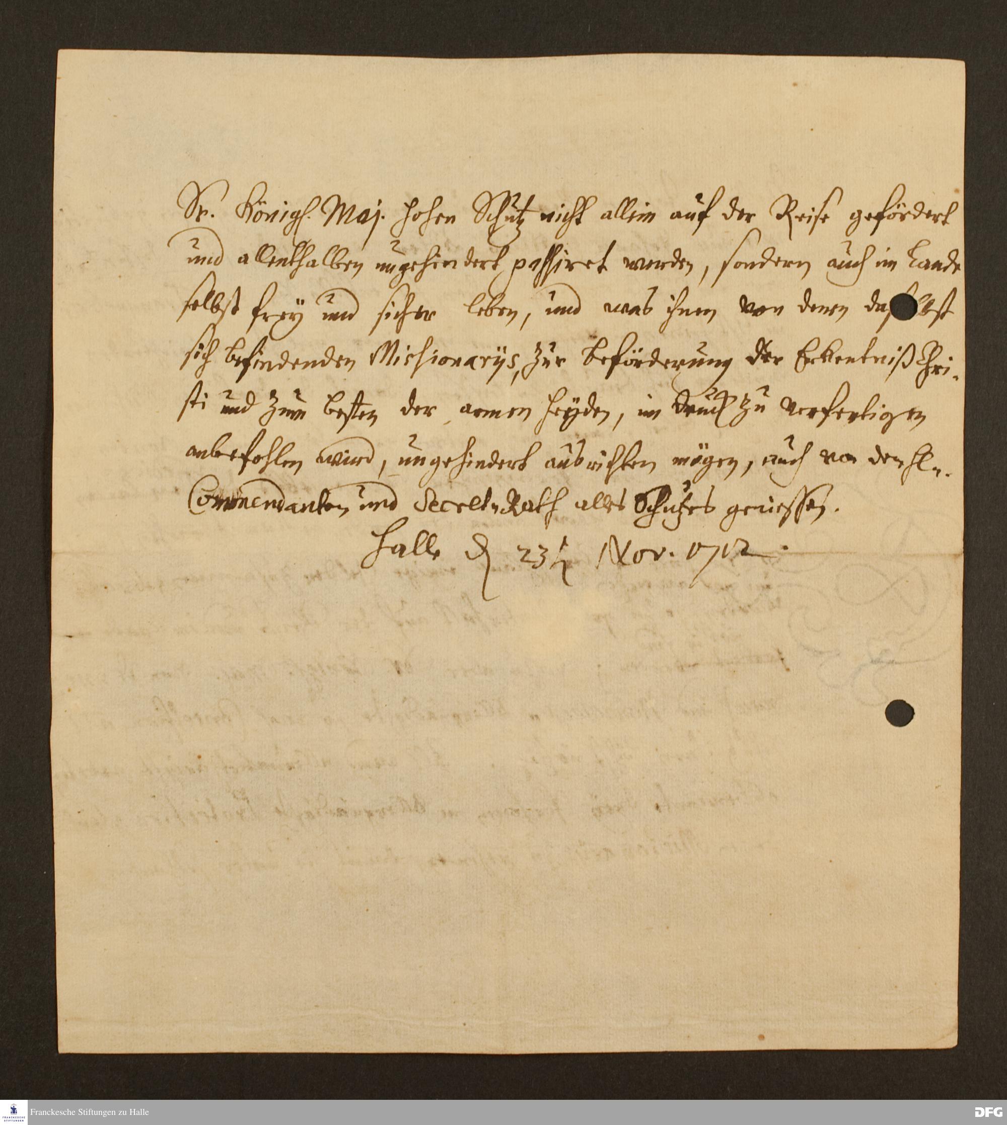 Gesuch August Hermann Franckes an Friedrich IV. König von Dänemark und Norwegen.