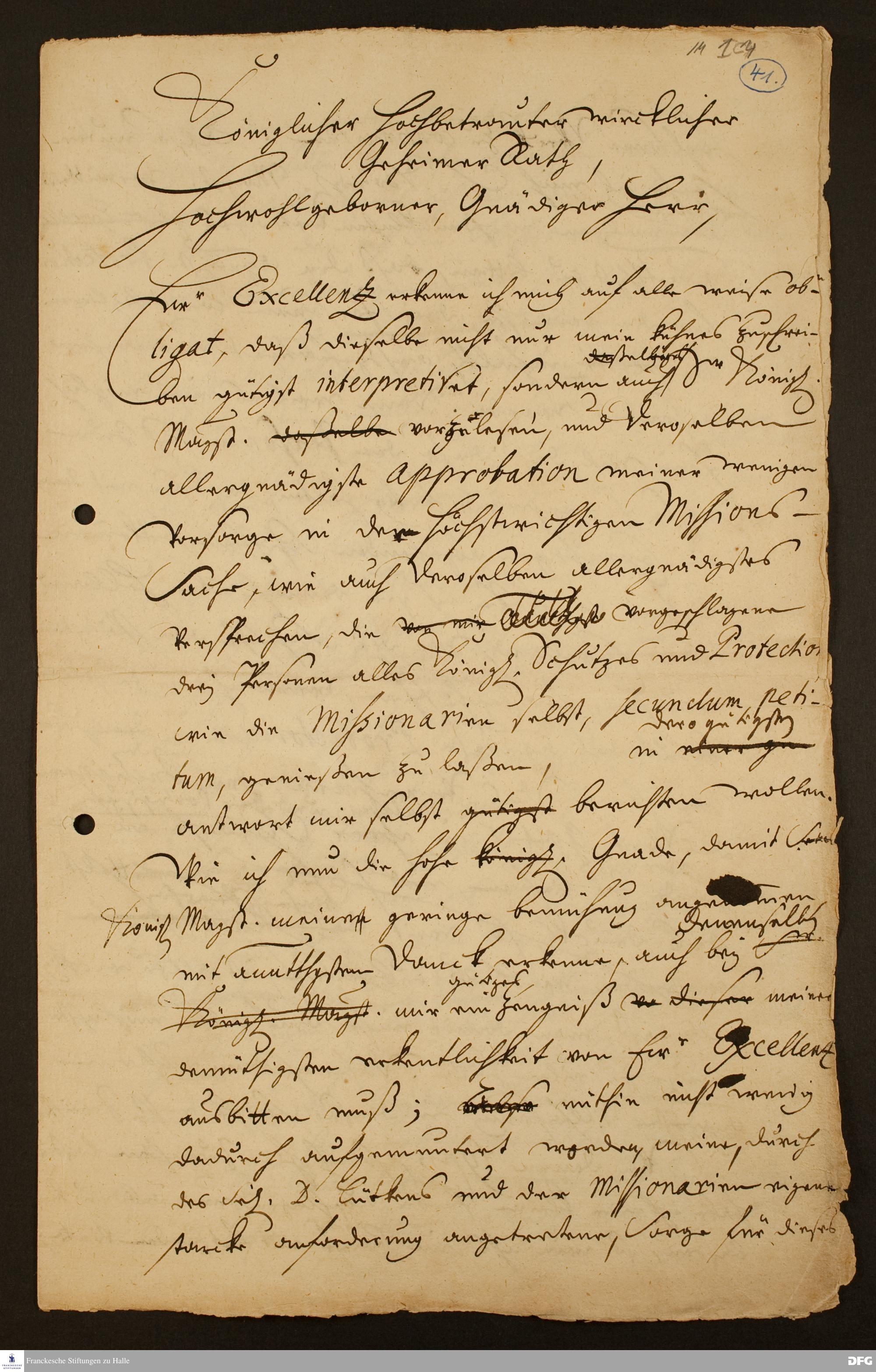 Brief von August Hermann Francke an [Johann Georg v. Holstein].