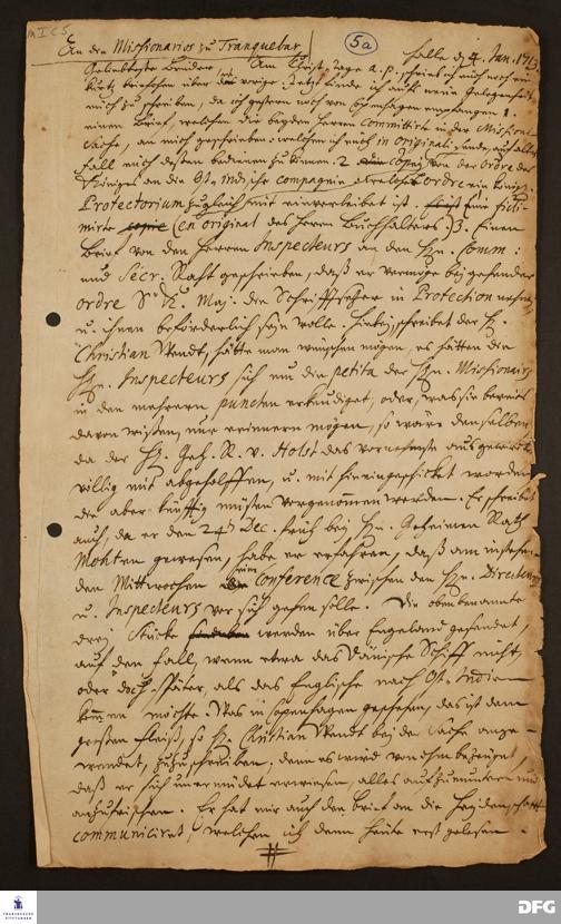 Brief von August Hermann Francke an [Bartholomäus Ziegenbalg, Johann Ernst Gründler und Polycarp Jordan].