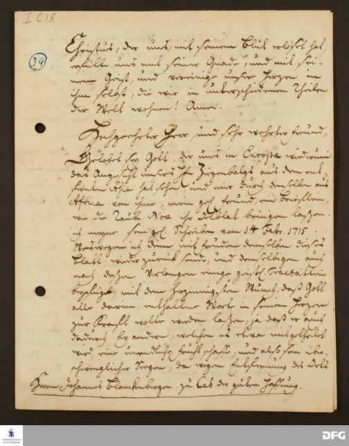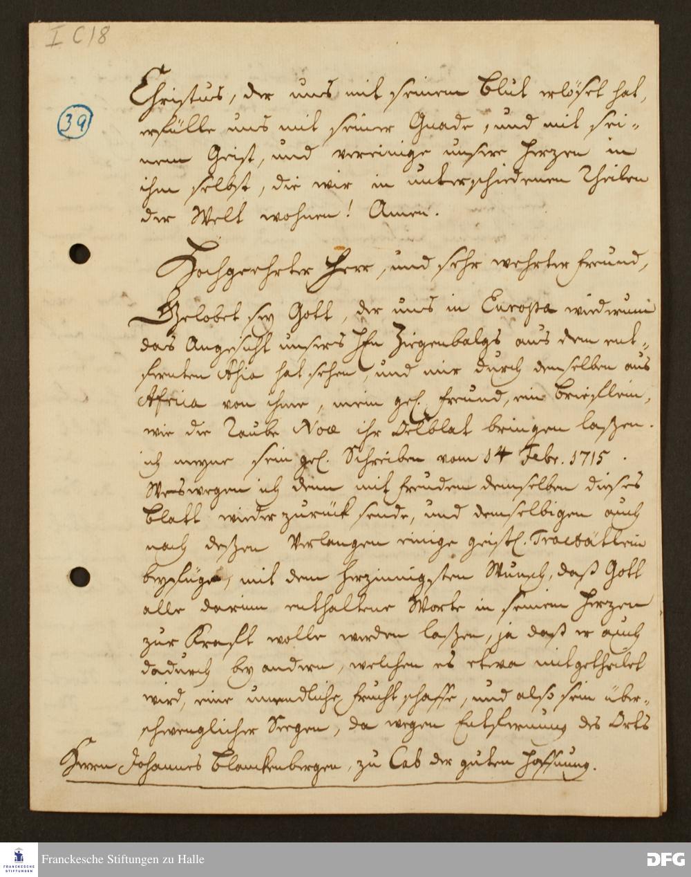 Brief von August Hermann Francke an Johann Blanckenberg.