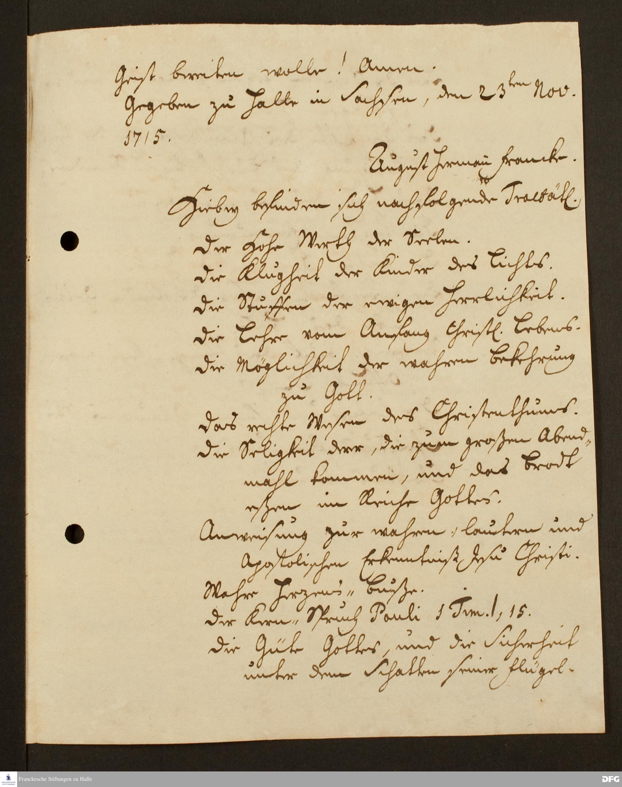 Brief von August Hermann Francke an Johann Blanckenberg.