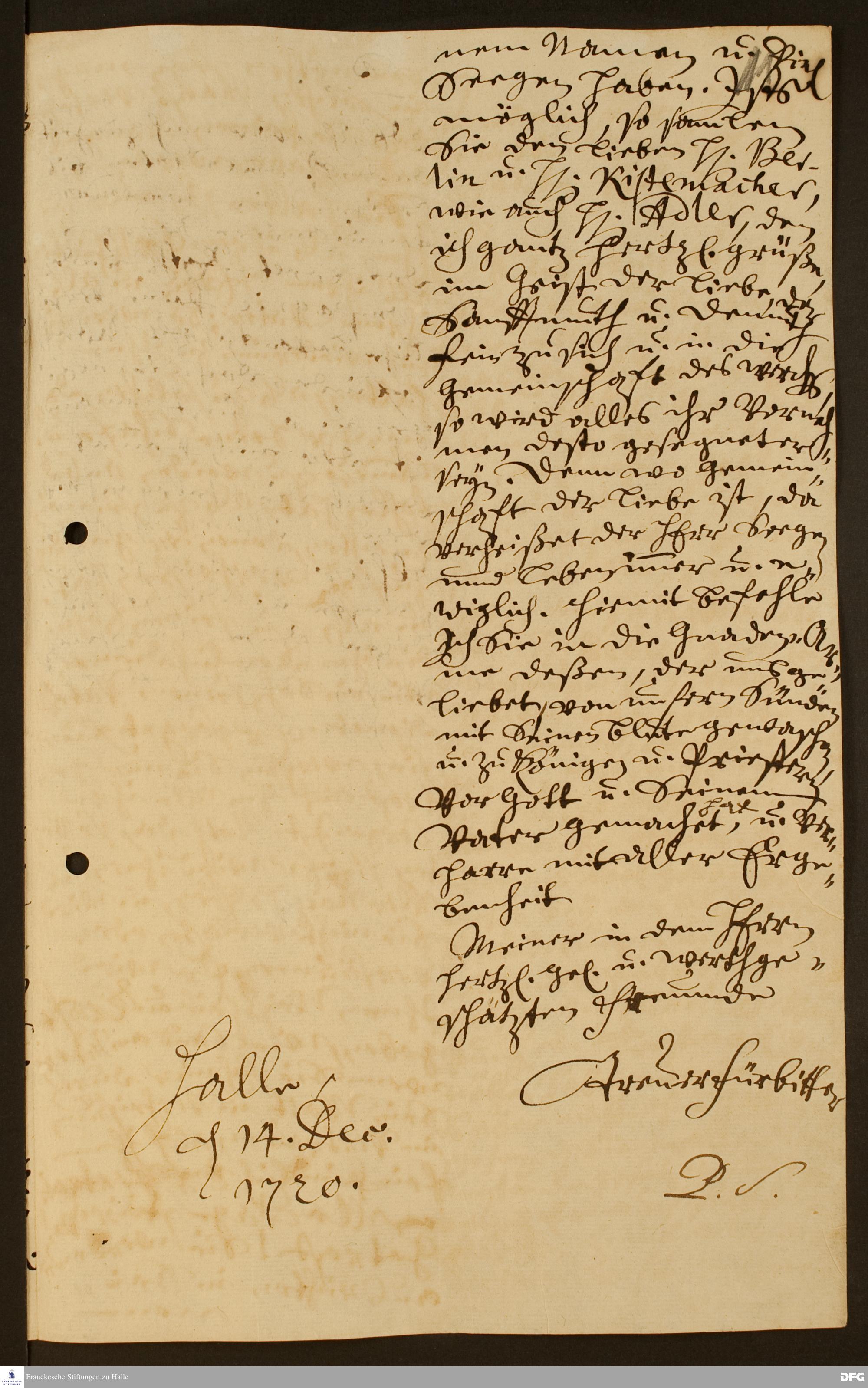Brief von [August Hermann Francke] an [Benjamin Schultze] und [Nikolaus Dal].