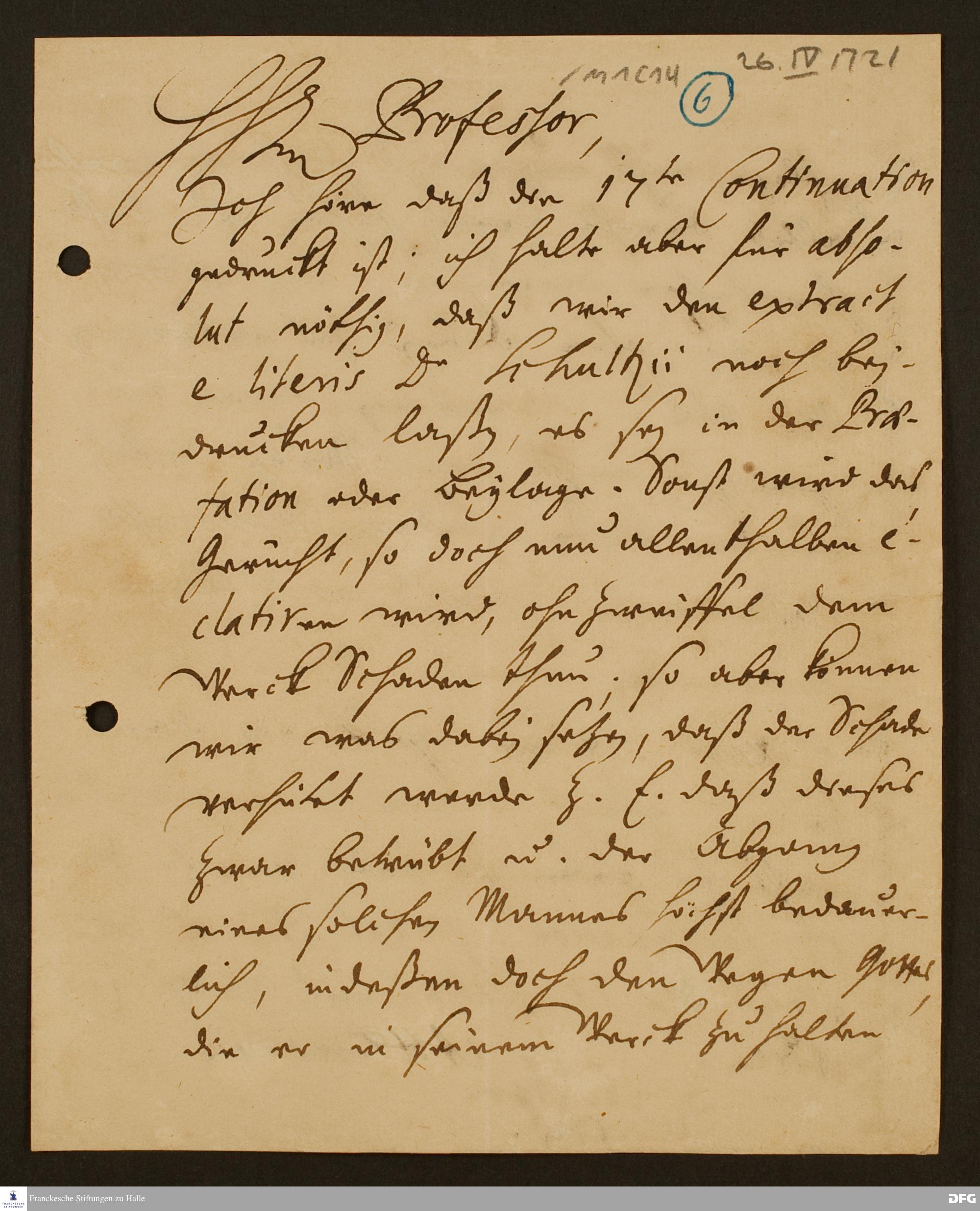 Brief von August Hermann Francke an Christian Benedict Michaelis.
