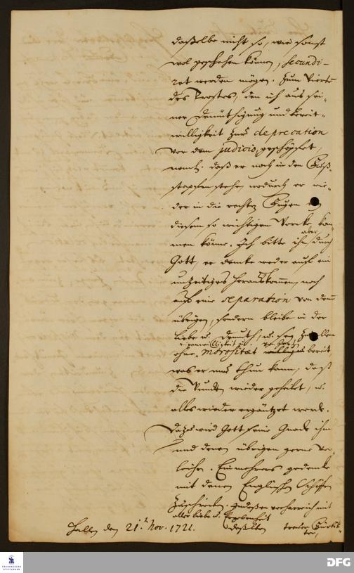 Brief von August Hermann Francke an Johann Heinrich Kistemacher.