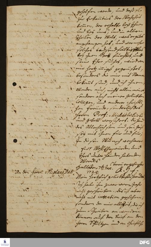 Brief von August Hermann Francke an Benjamin Schultze.