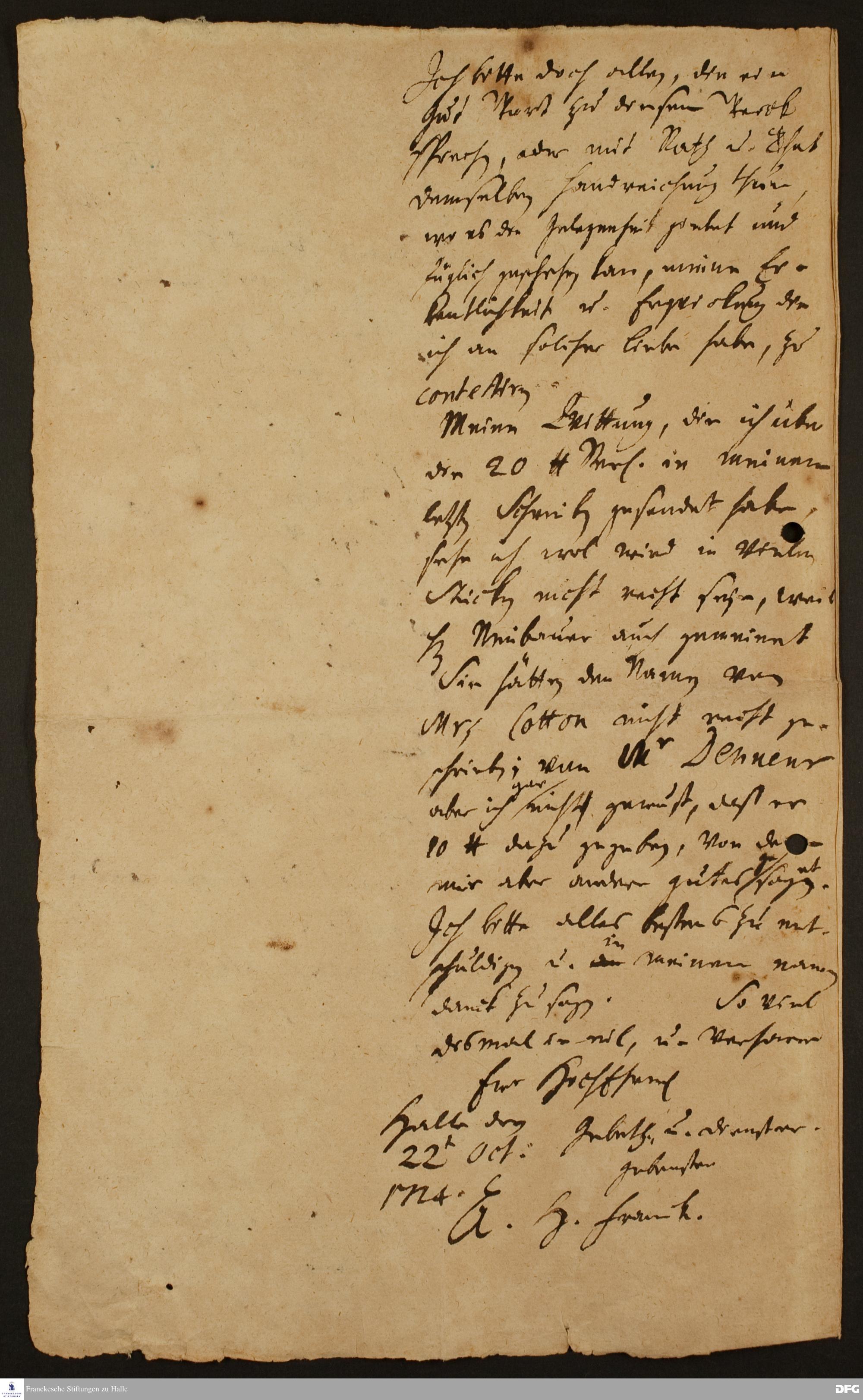 Brief von August Hermann Francke an Friedrich Michael Ziegenhagen.