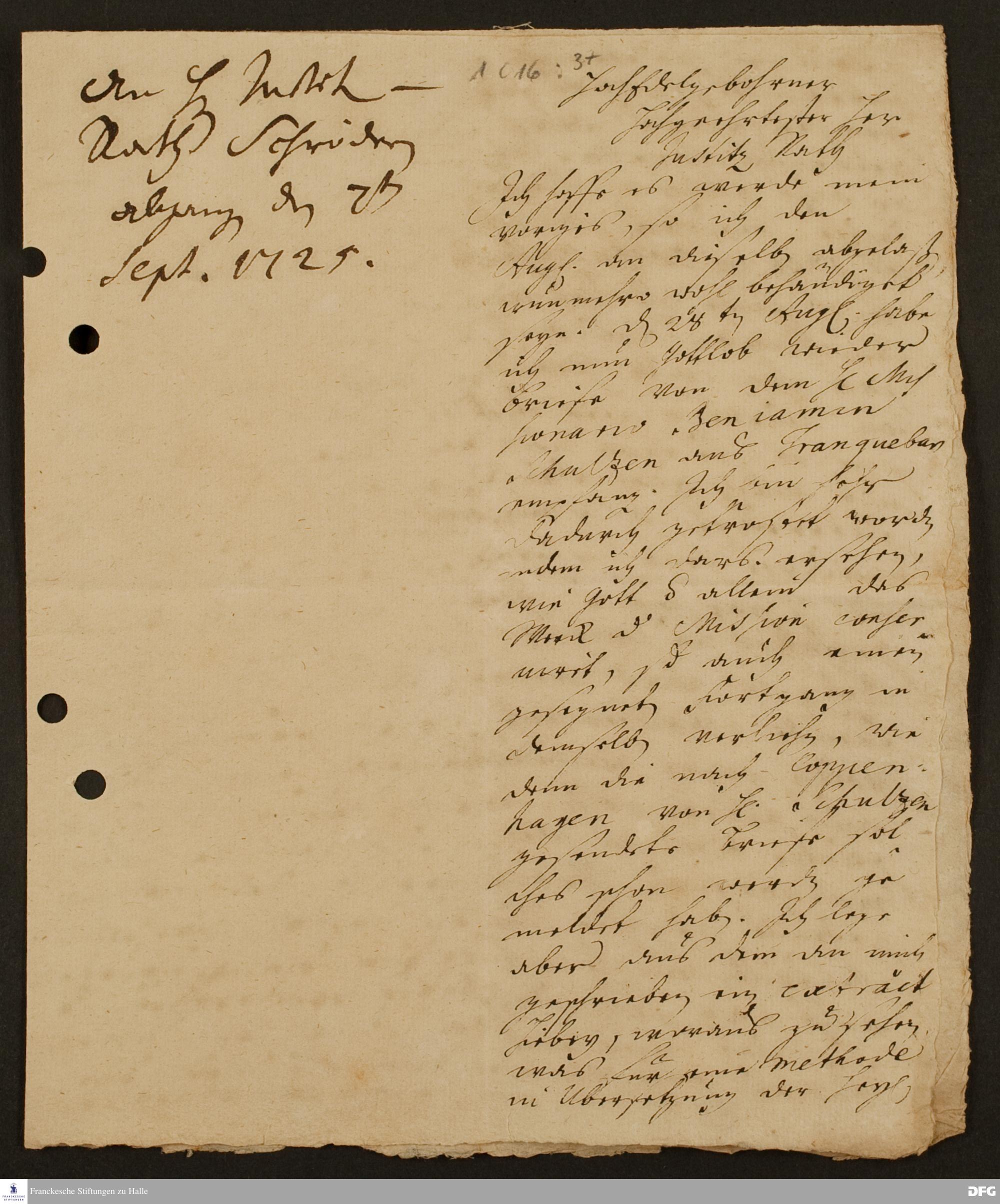 Brief von August Hermann Francke an Johann Wilhelm Schröder.