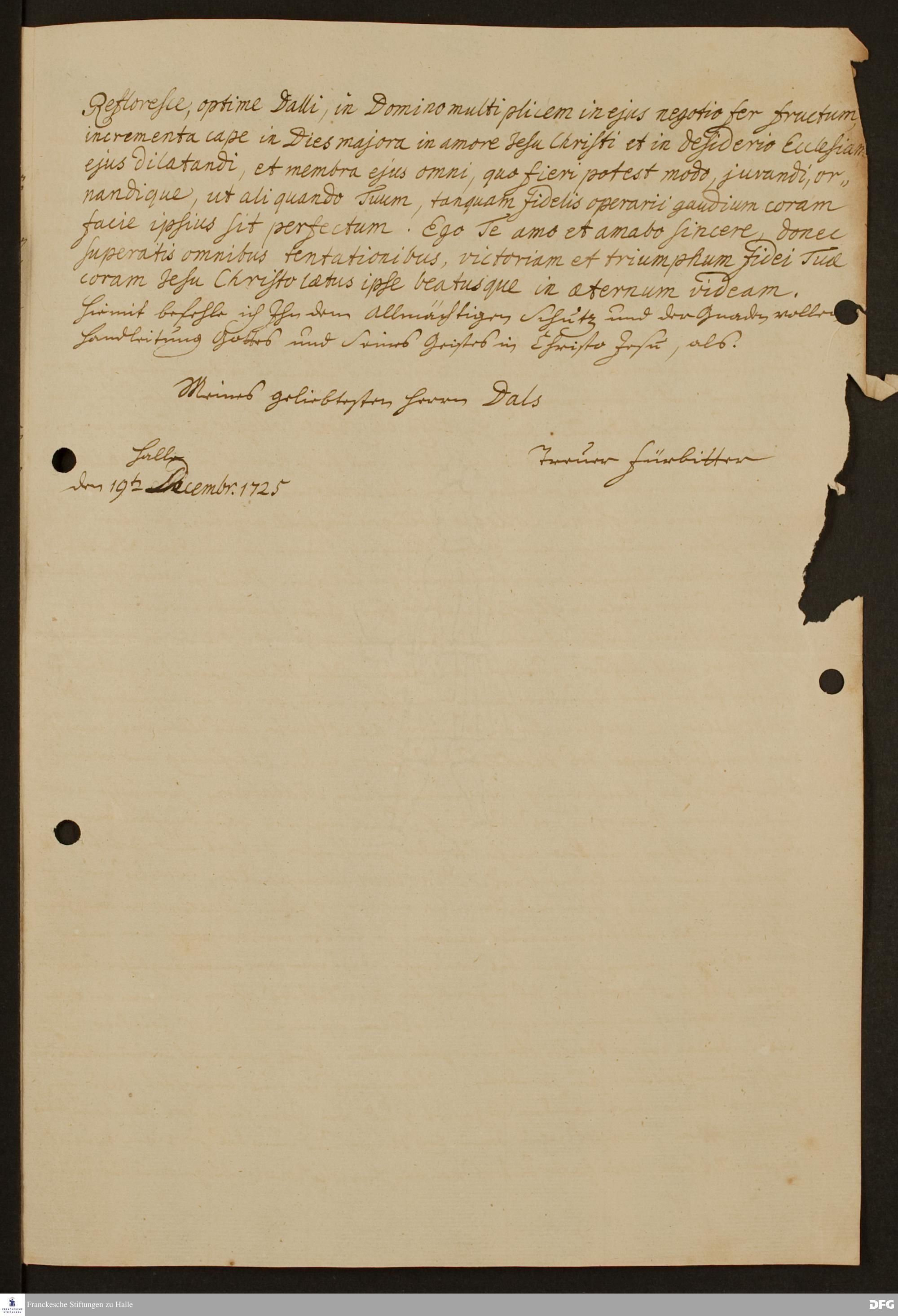 Brief von August Hermann Francke an Nikolaus Dal.