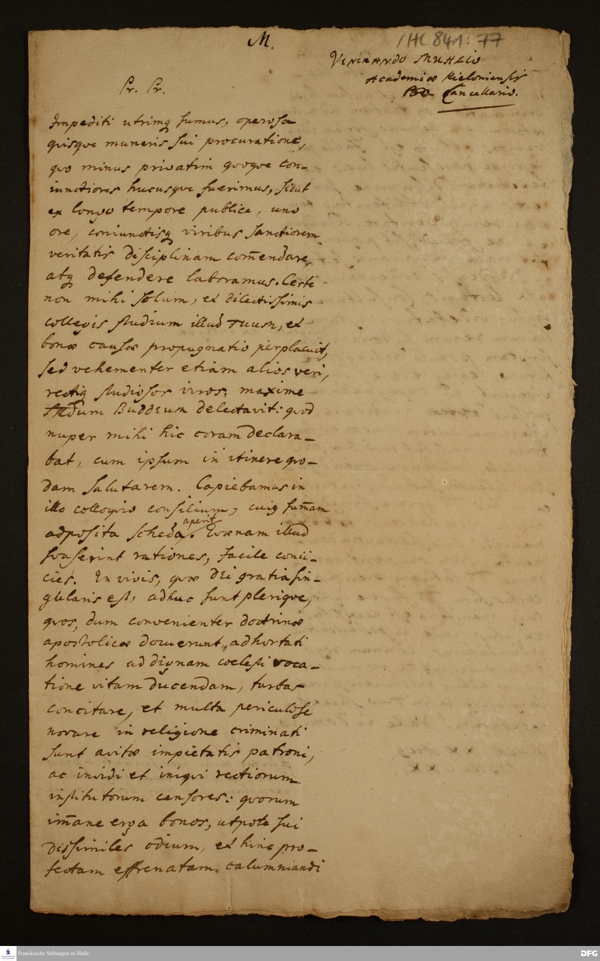 Brief von August Hermann Francke an Heinrich Muhlius.