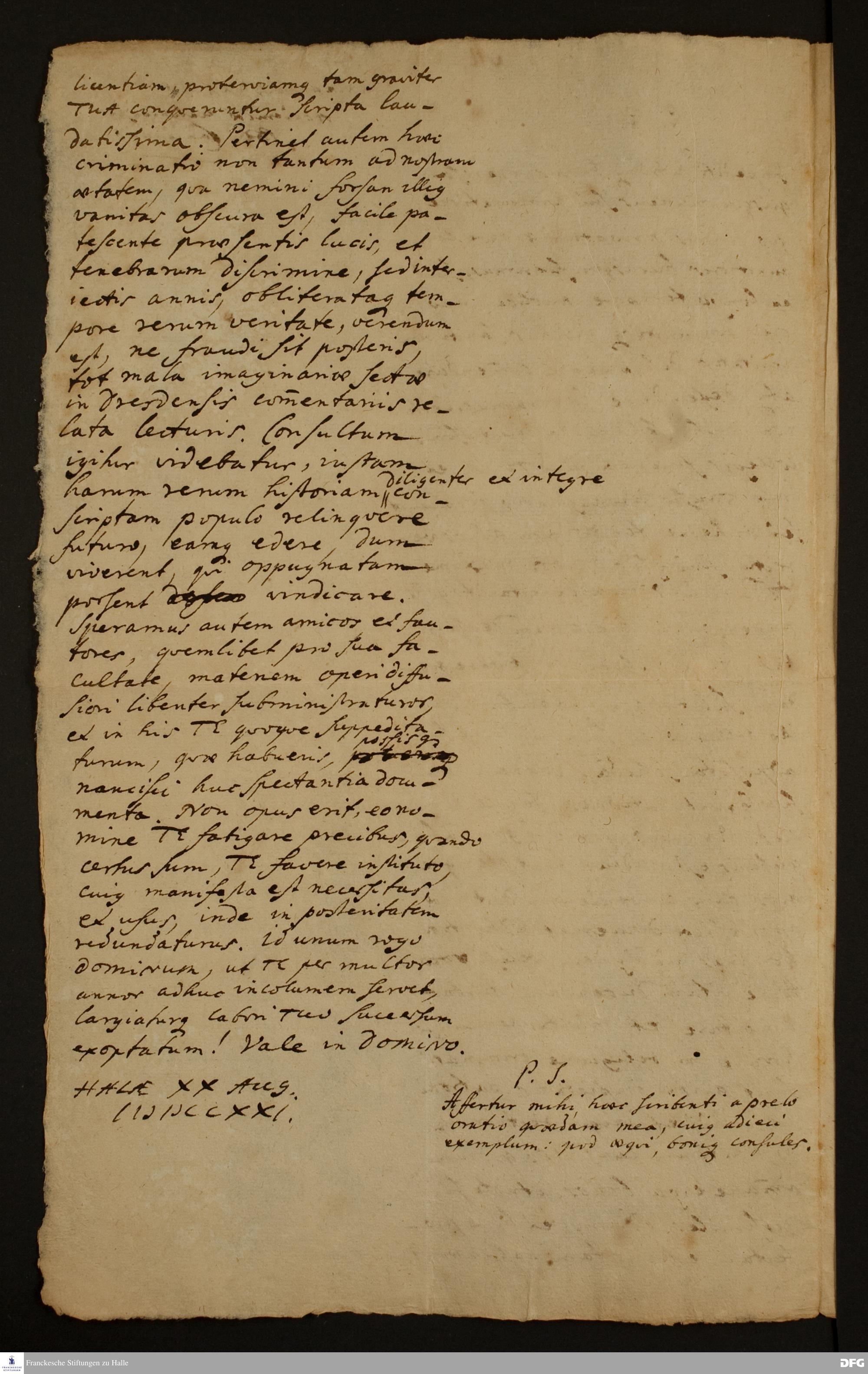 Brief von August Hermann Francke an Heinrich Muhlius.