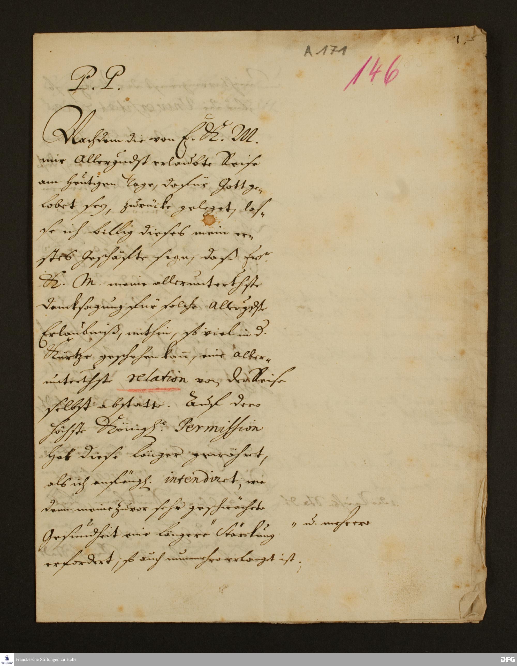 Brief von August Hermann Franckes an Friedrich Wilhelm I., König in Preußen.