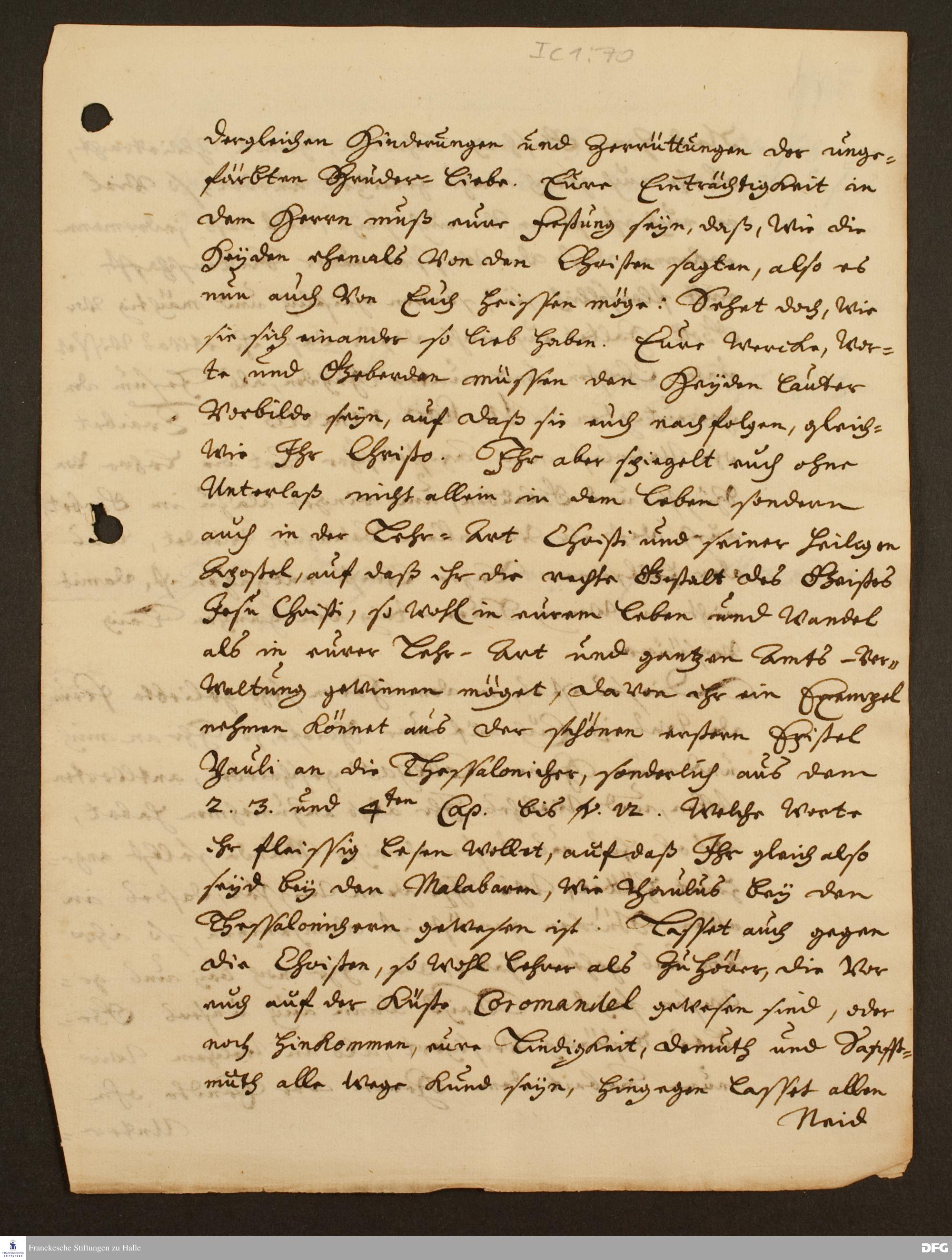 Brief von Joachim Justus Breithaupt, Paul Anton und August Hermann Francke an Bartholomäus Ziegenbalg und Heinrich Plütschau.