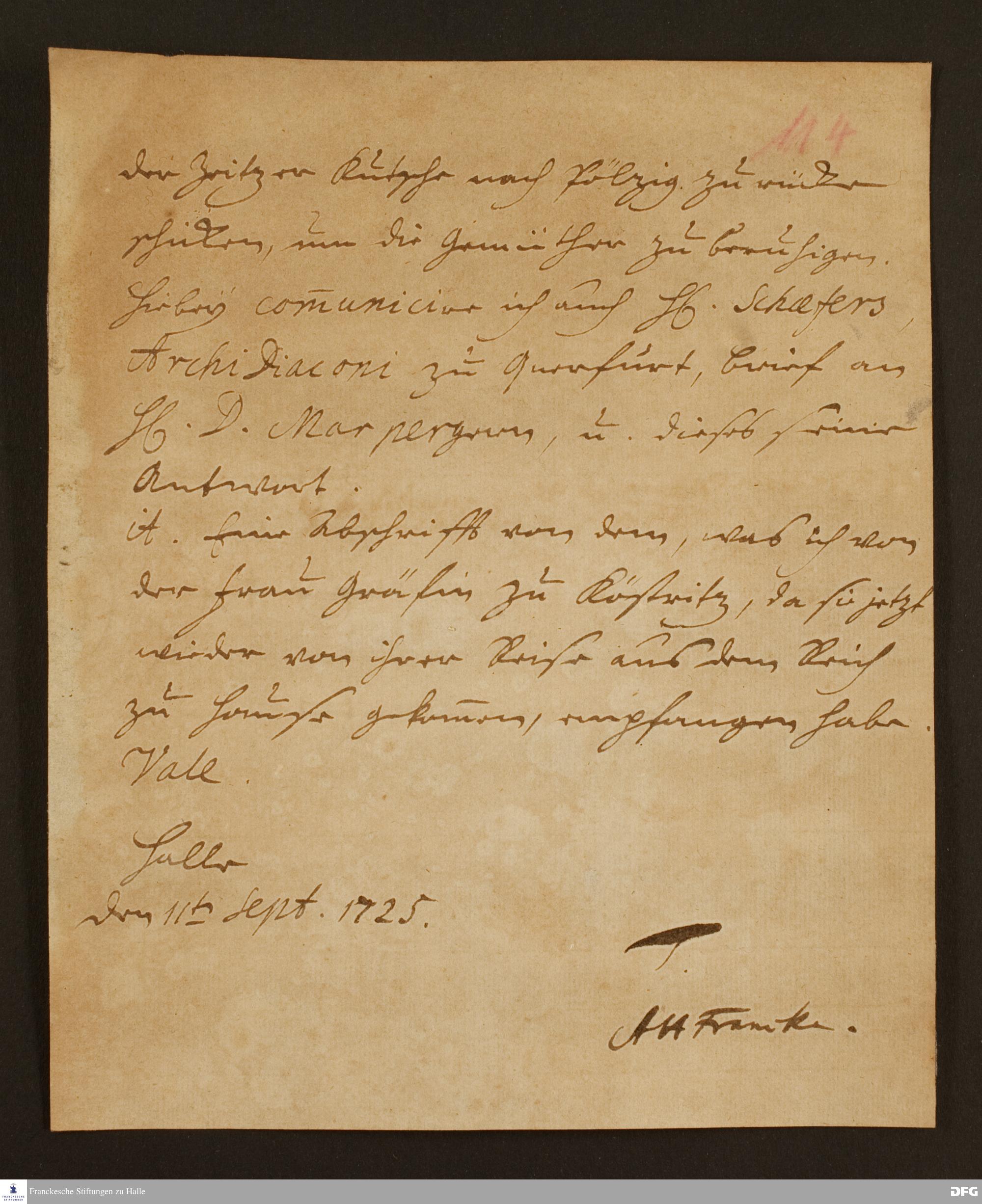 Mitteilung von August Hermann Francke an Joachim Lange.