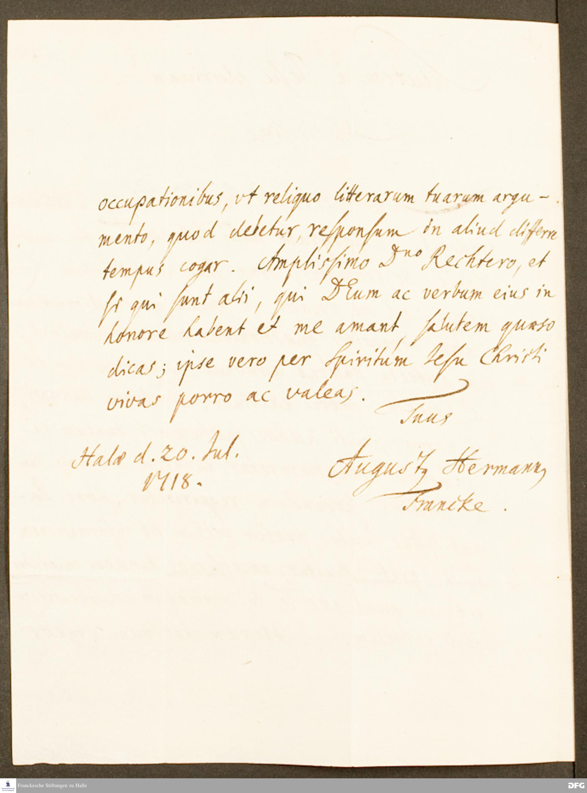 Brief von August Hermann Francke an August John.