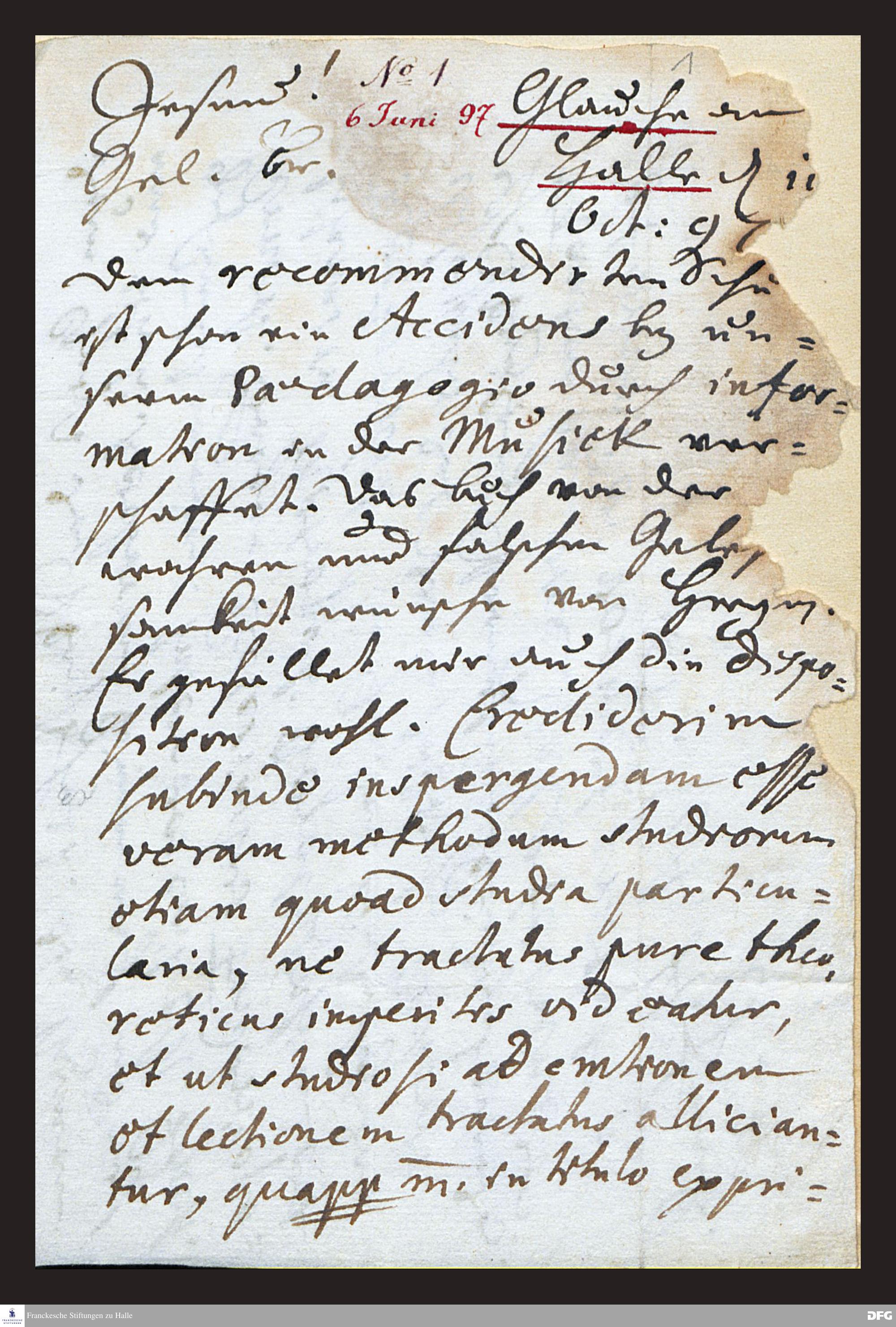 Brief von August Hermann Francke an Gottfried Vockerodt.