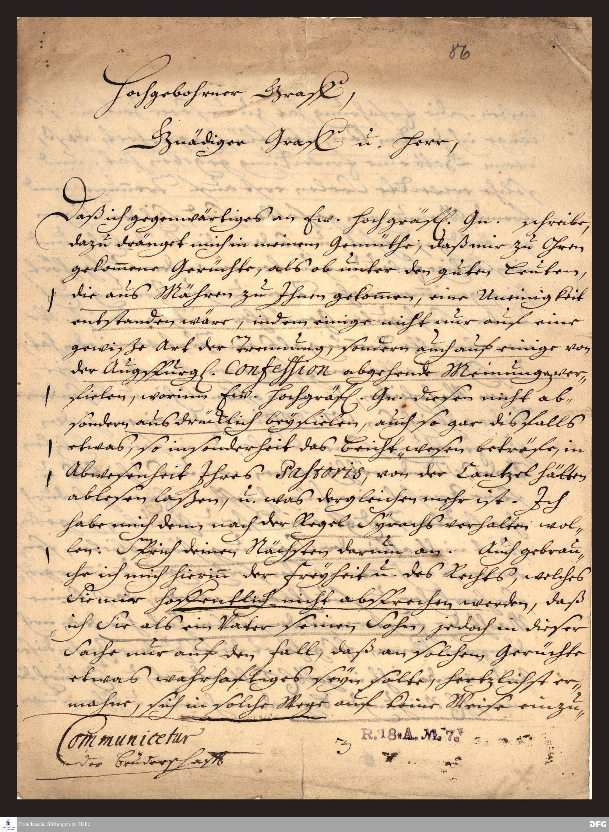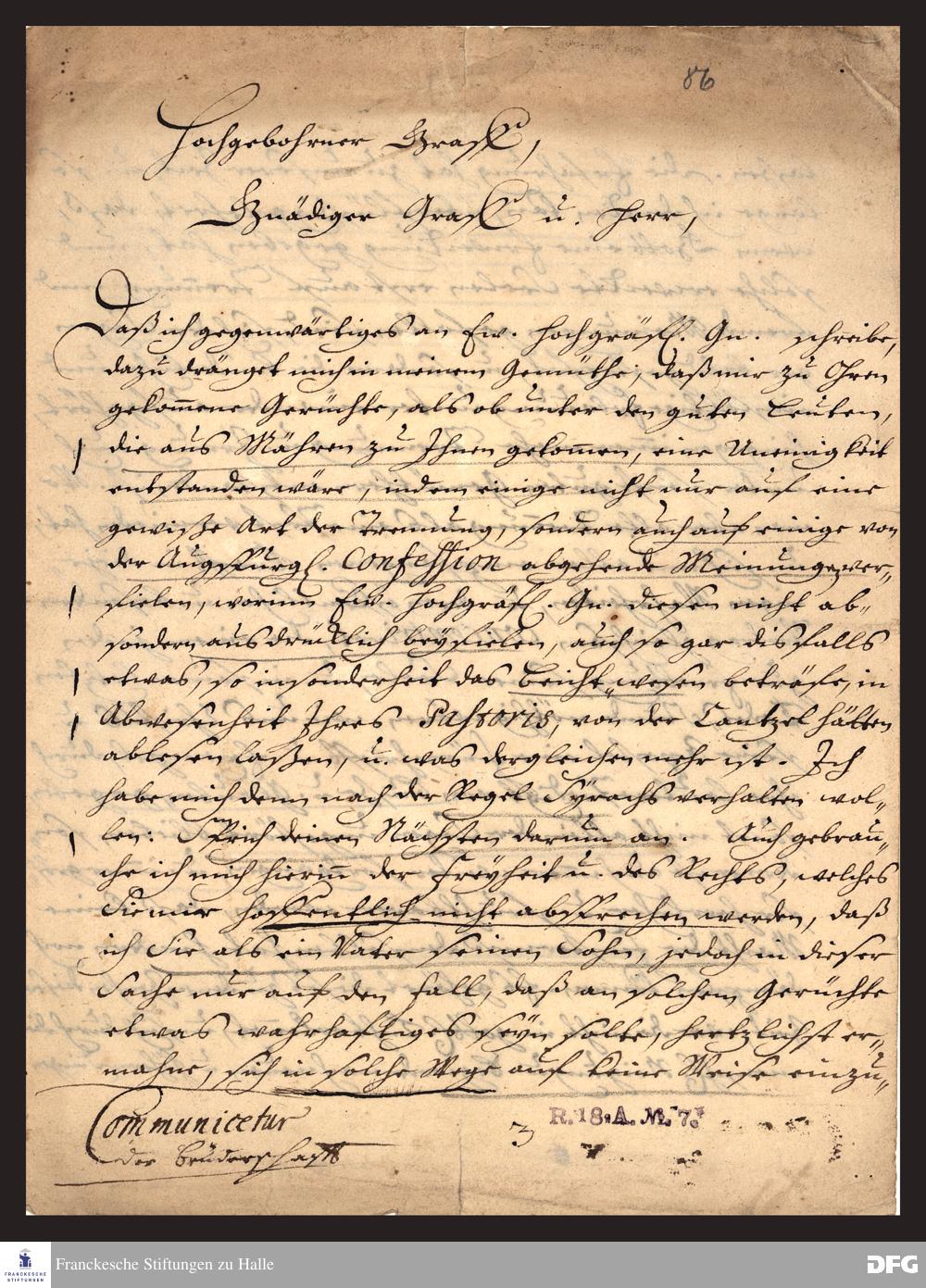 Brief von August Hermann Francke an Nikolaus Ludwig von Zinzendorf .