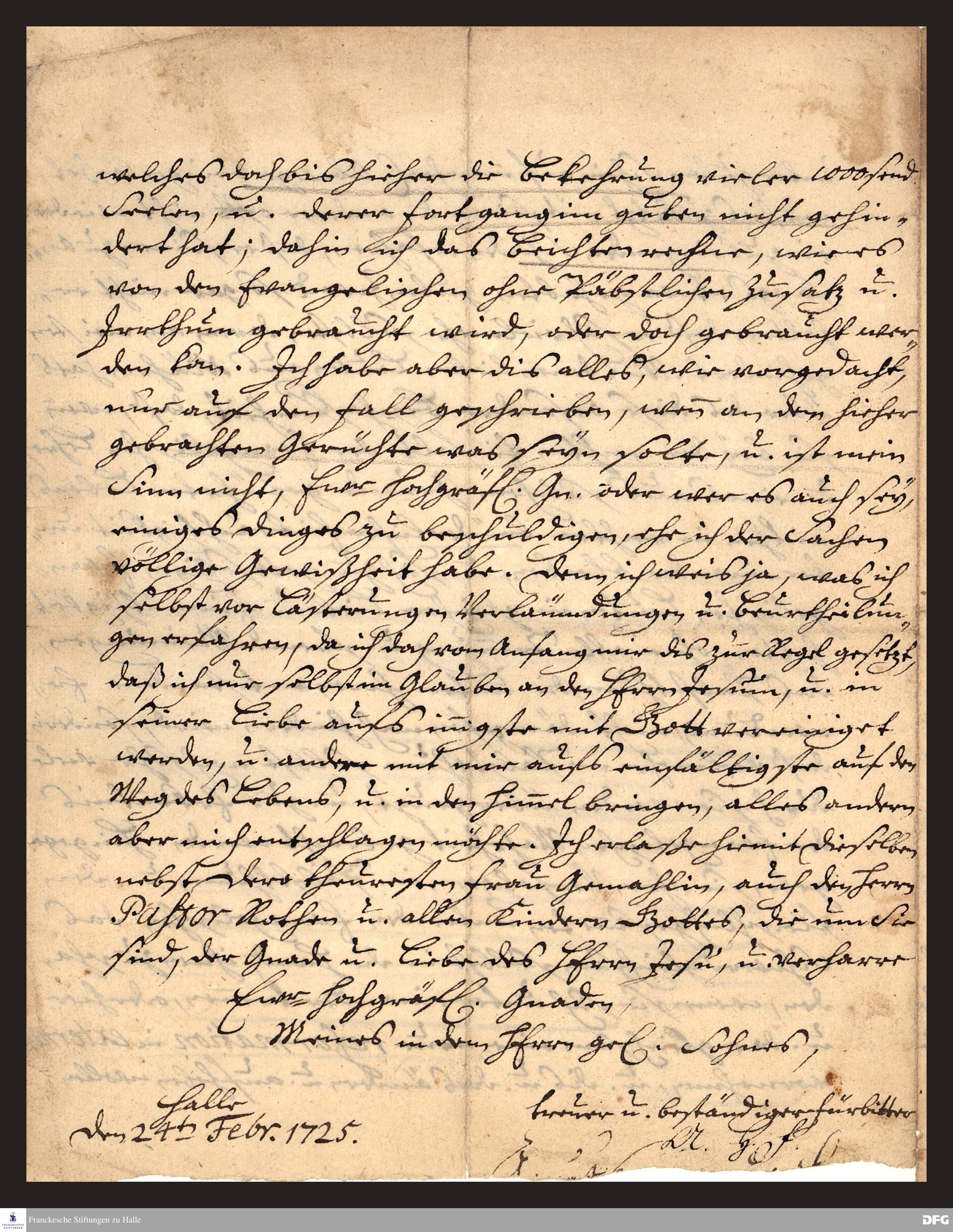 Brief von August Hermann Francke an Nikolaus Ludwig von Zinzendorf .