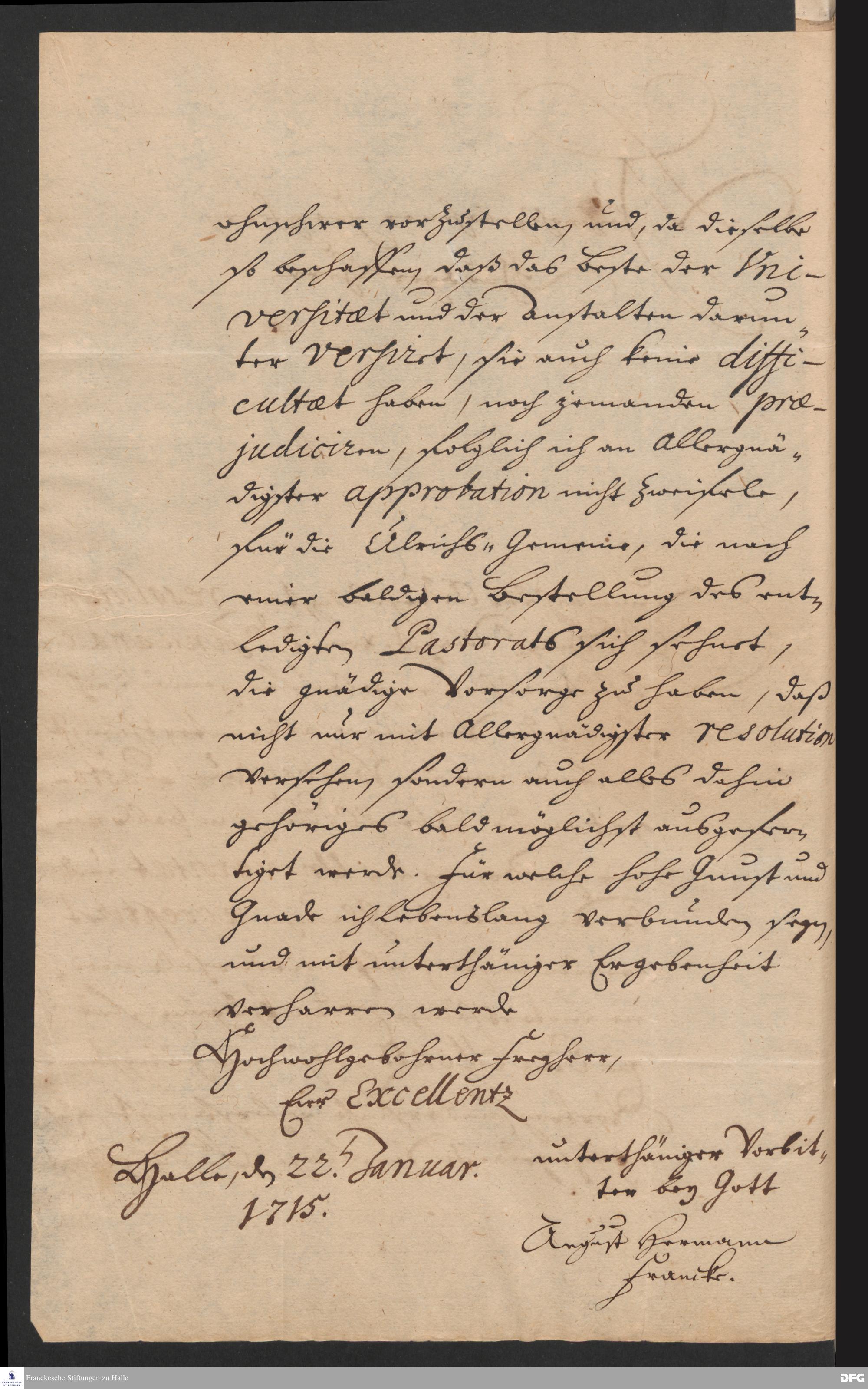 Brief von August Hermann Francke an [Marquard Ludwig von Printzen und Johann Moritz von Blaspiel ?].