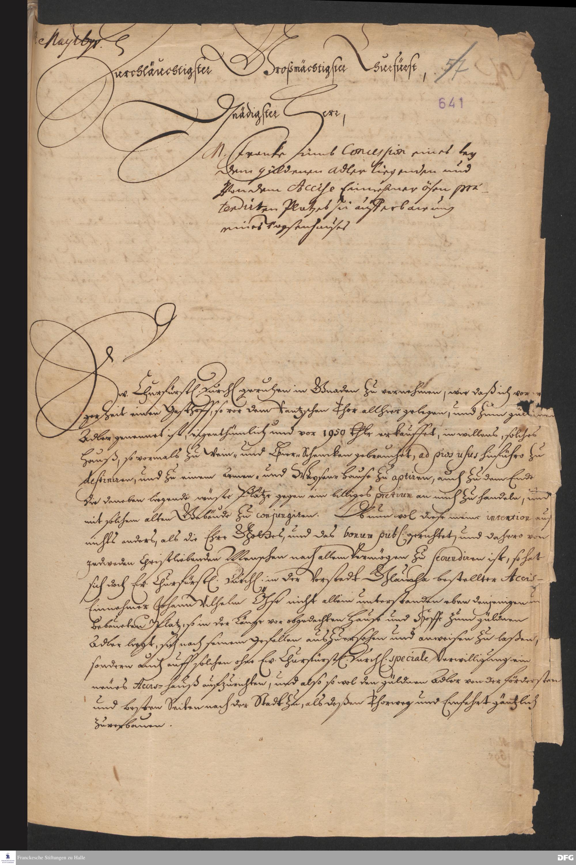 Brief von August Hermann Francke an Friedrich III., Kurfürst von Brandenburg.