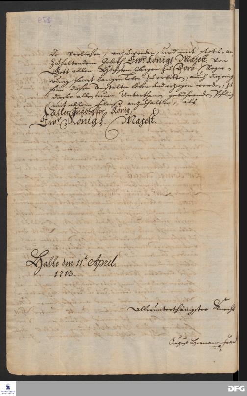 Brief von August Hermann Francke an Friedrich Wilhelm I., König in Preußen.