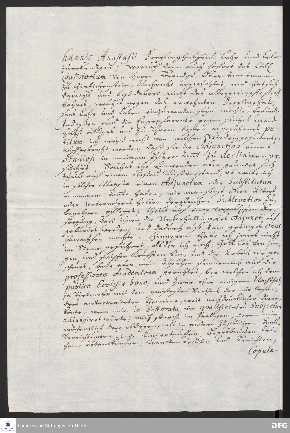 Brief von August Hermann Francke an Friedrich III., Kurfürst von Brandenburg.