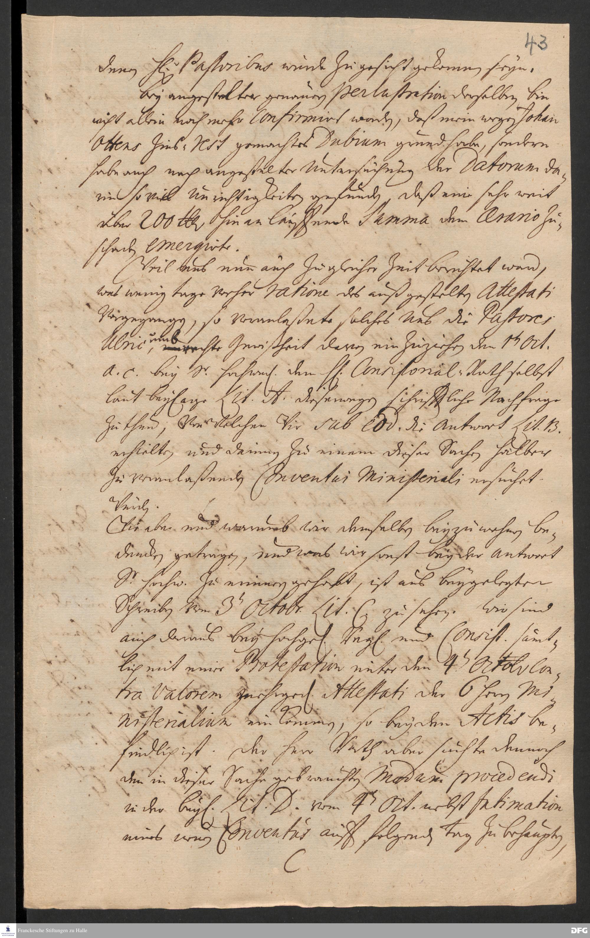 Brief von August Hermann Francke, Johann Anastasius Freylinghausen und Johann Christoph Semler an Friedrich Wilhelm I., König in Preußen.