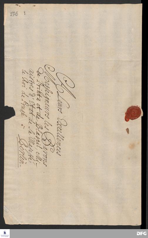 Brief von [August Hermann Francke, Joachim Just Breithaupt, Paul Anton, Johann Heinrich Michaelis und Joachim Lange] an Marquard Ludwig von Printzen und Johann Moritz von Blaspiel.
