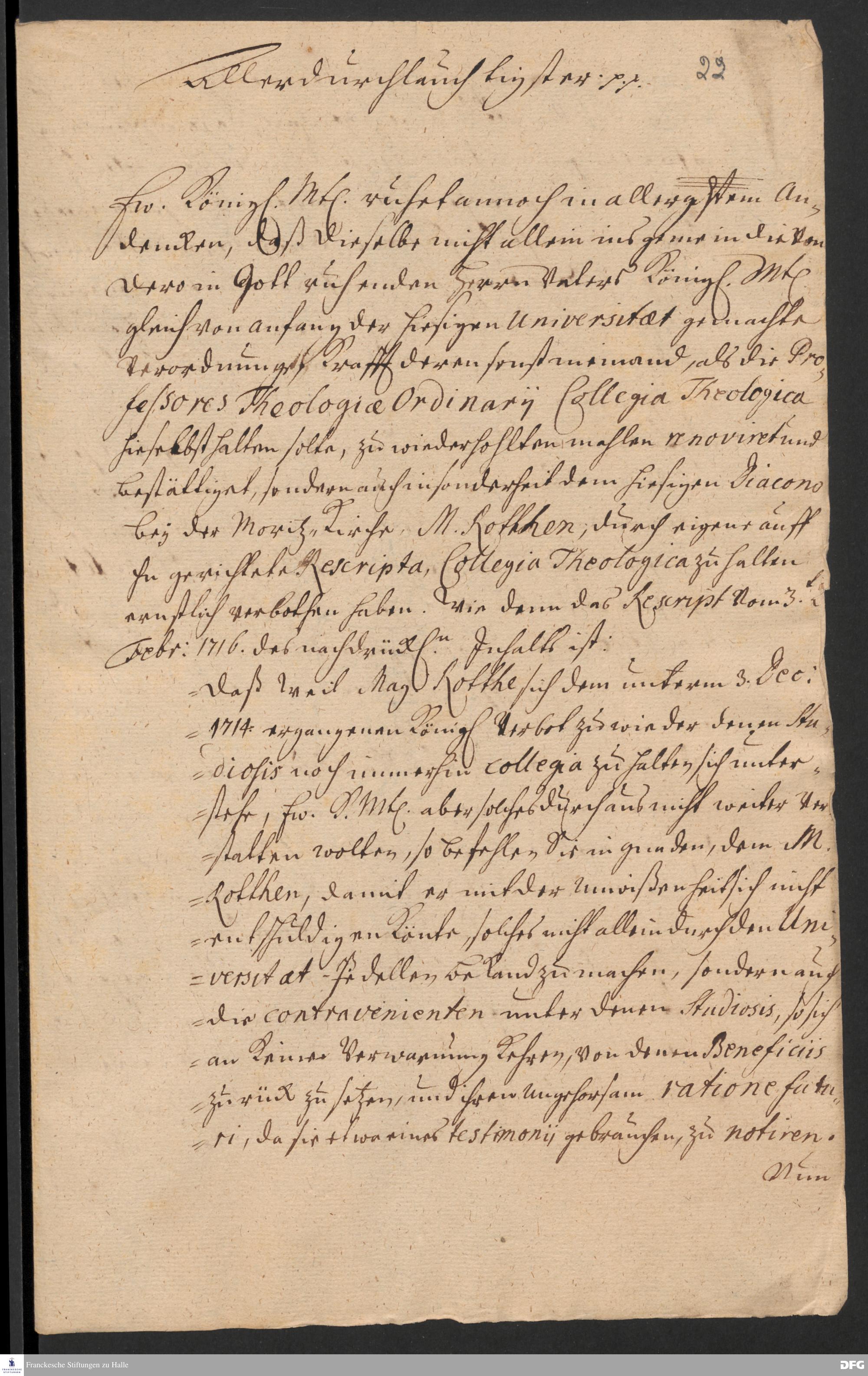 Brief von August Hermann Francke, Joachim Just Breithaupt, Paul Anton, Johann Heinrich Michaelis, Joachim Lange und Johann Daniel Herrnschmidt an Friedrich Wilhelm I., König in Preußen.
