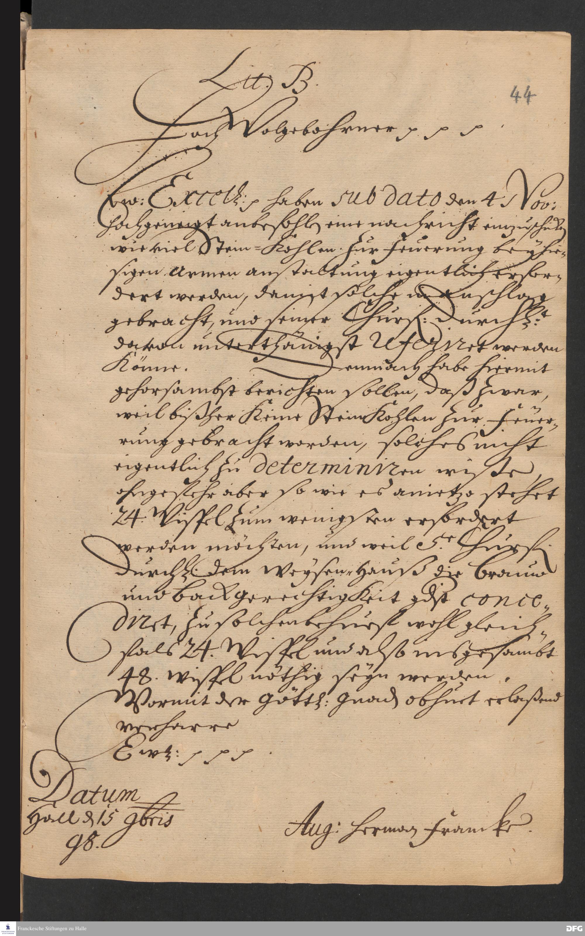Brief von August Hermann Francke an [Paul von Fuchs ?].