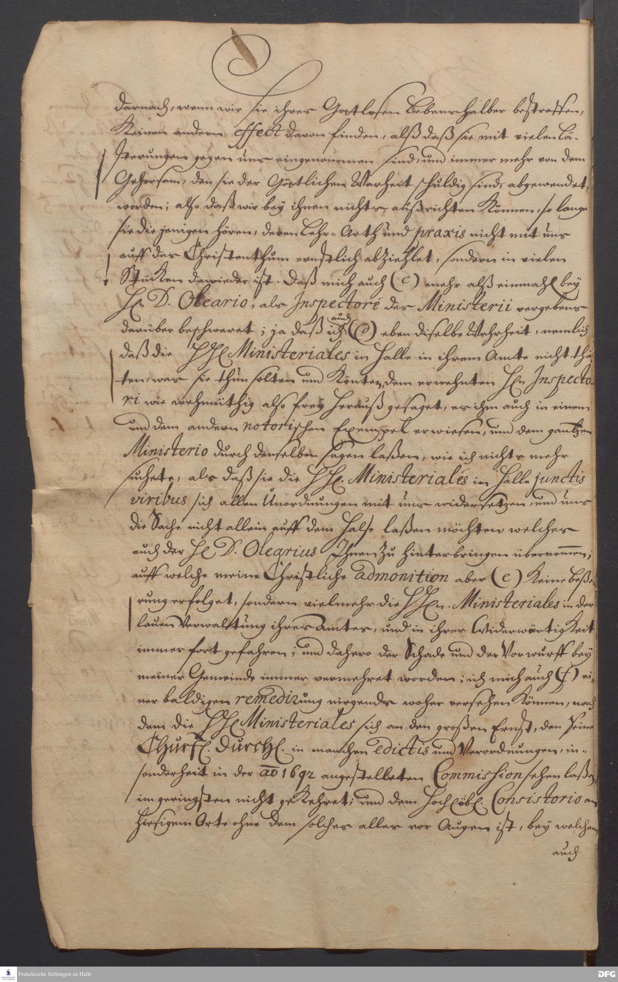Brief von August Hermann Francke an die kurfürstlich brandenburgische Regierung und das Konsistorium Magdeburg.