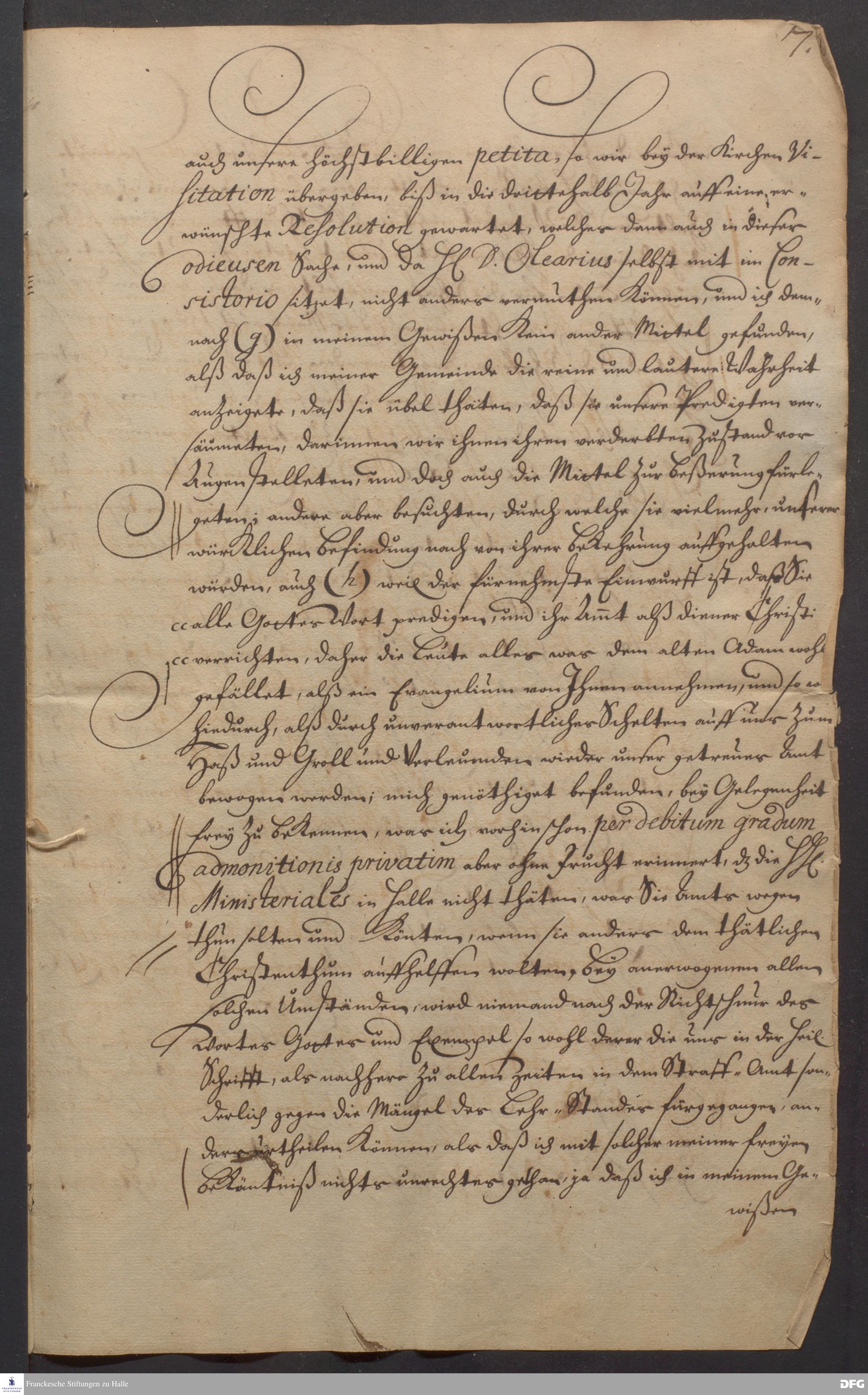 Brief von August Hermann Francke an die kurfürstlich brandenburgische Regierung und das Konsistorium Magdeburg.