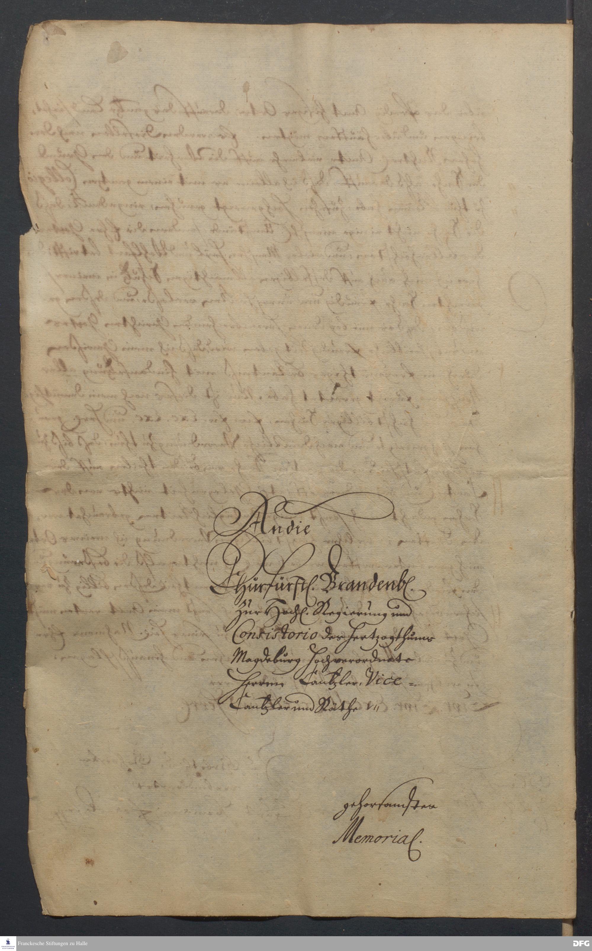 Brief von August Hermann Francke an die kurfürstlich brandenburgische Regierung und das Konsistorium Magdeburg.