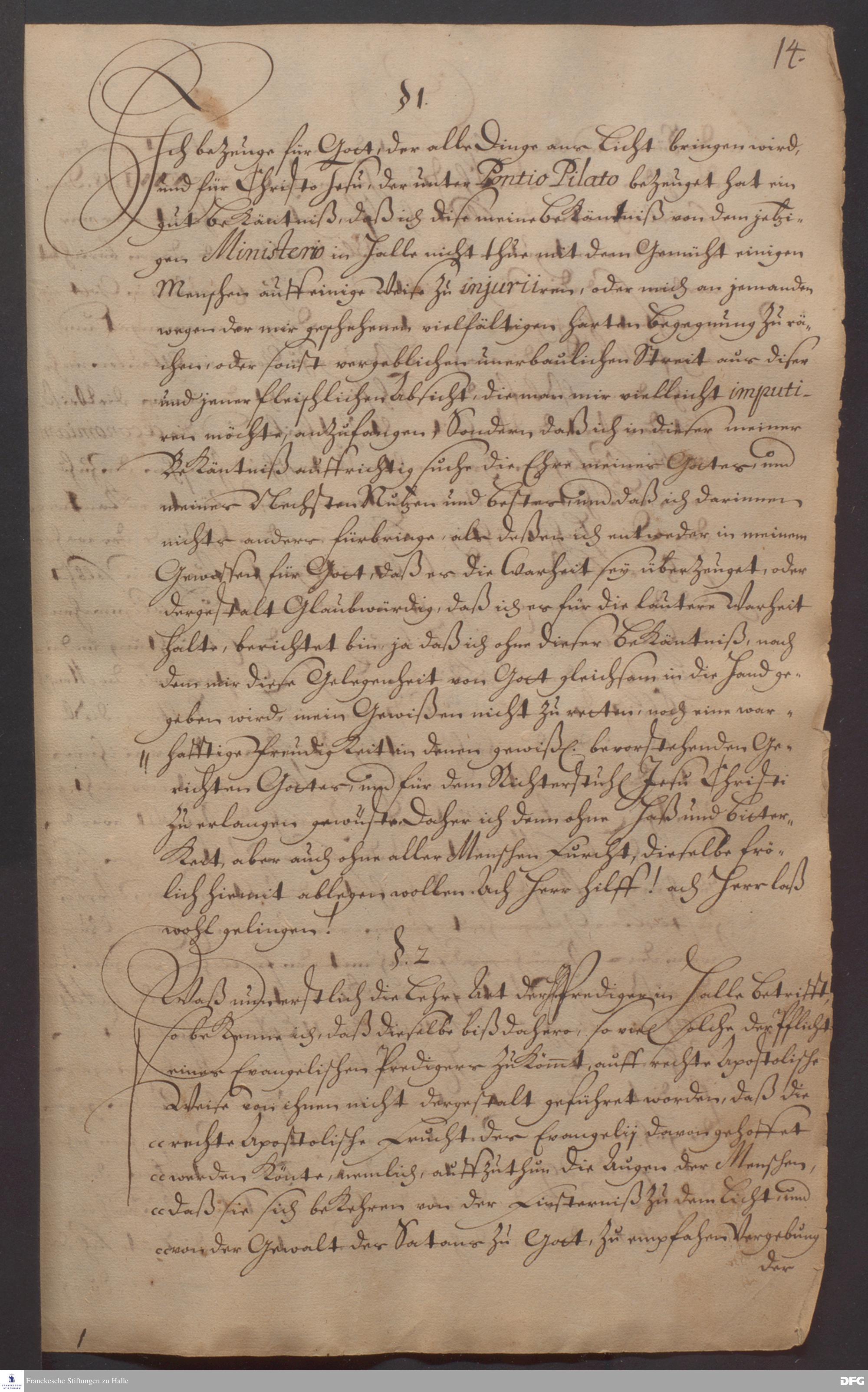 Brief von August Hermann Francke an die kurfürstlich brandenburgische Regierung und das Konsistorium Magdeburg.