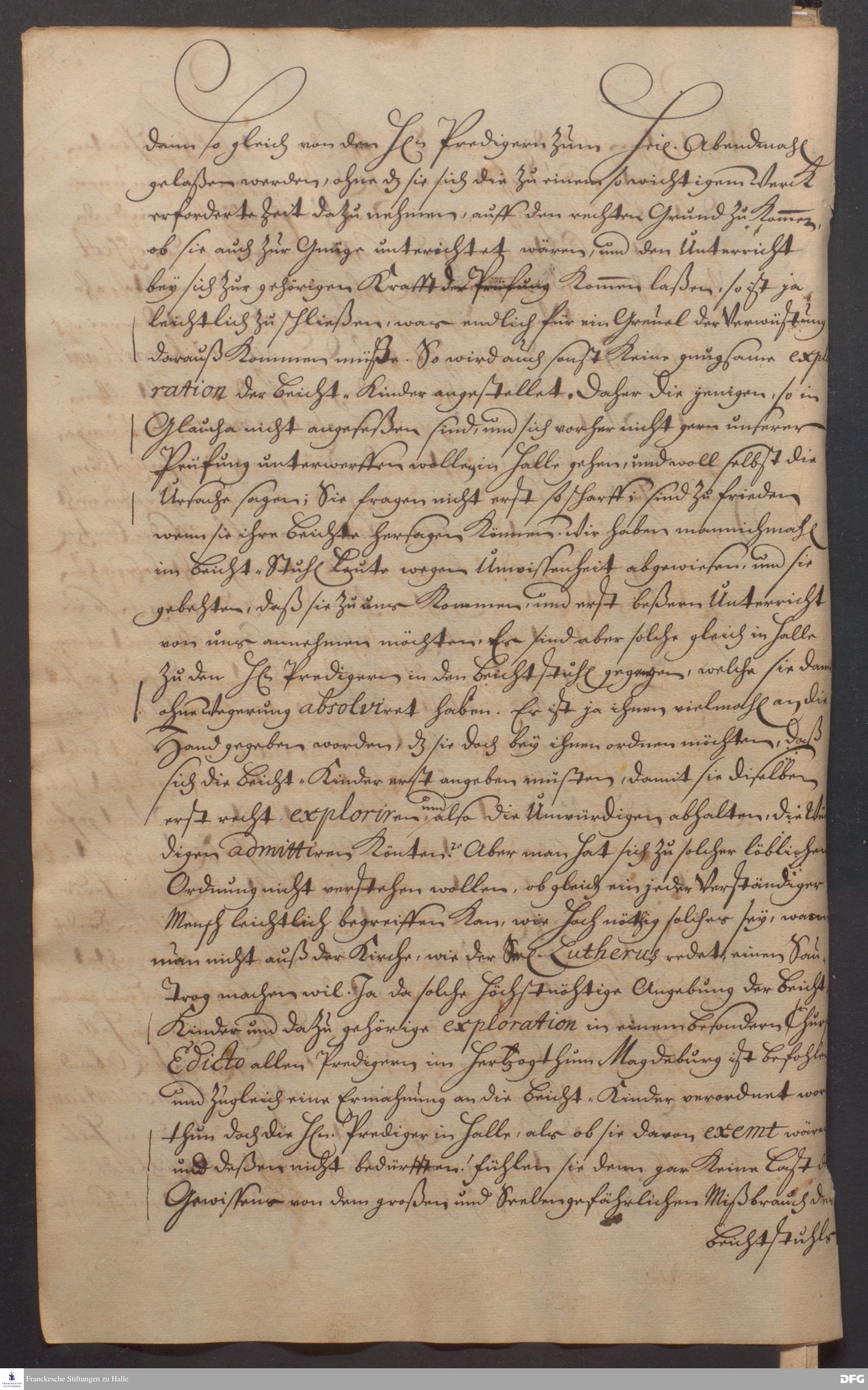 Brief von August Hermann Francke an die kurfürstlich brandenburgische Regierung und das Konsistorium Magdeburg.