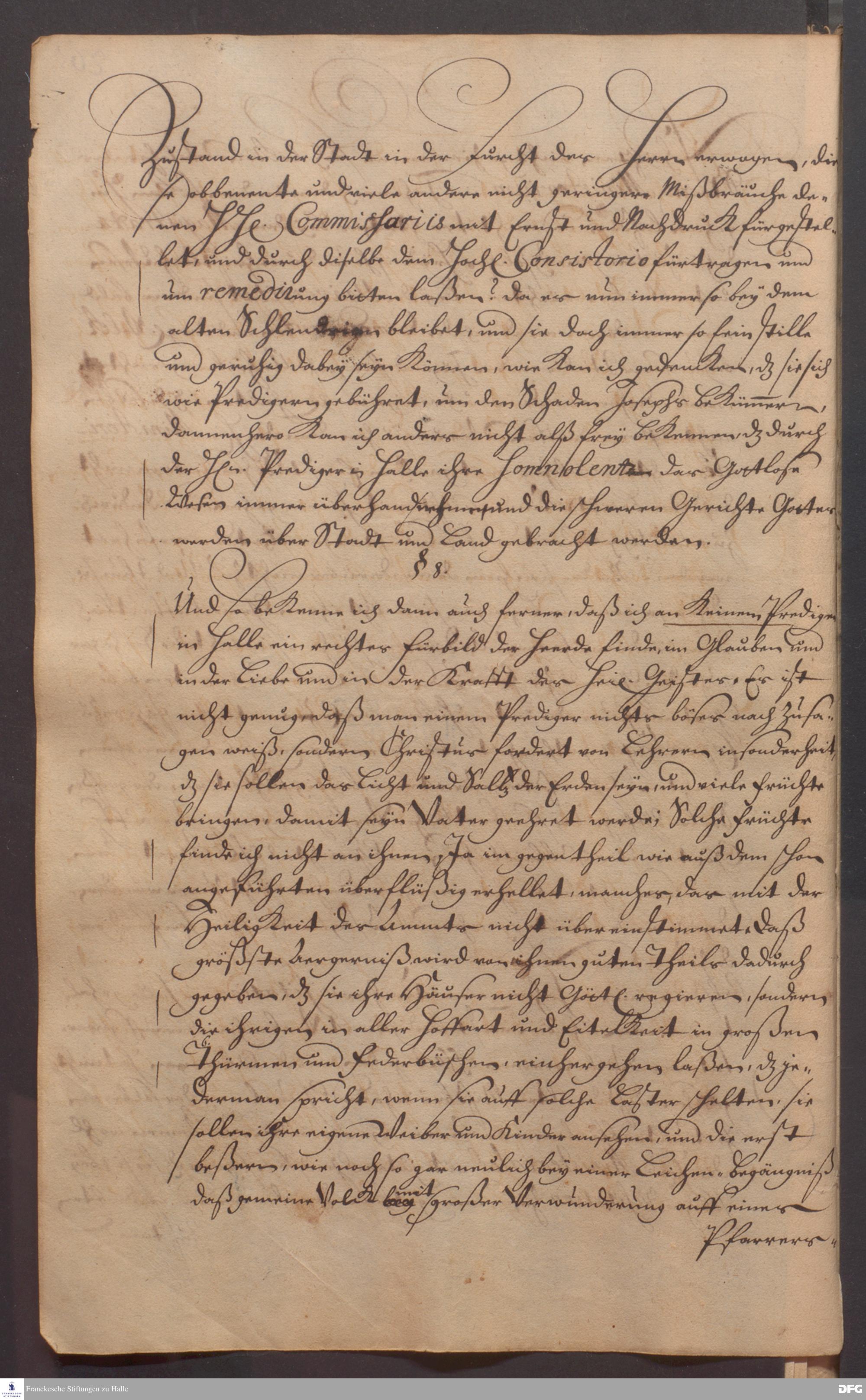 Brief von August Hermann Francke an die kurfürstlich brandenburgische Regierung und das Konsistorium Magdeburg.