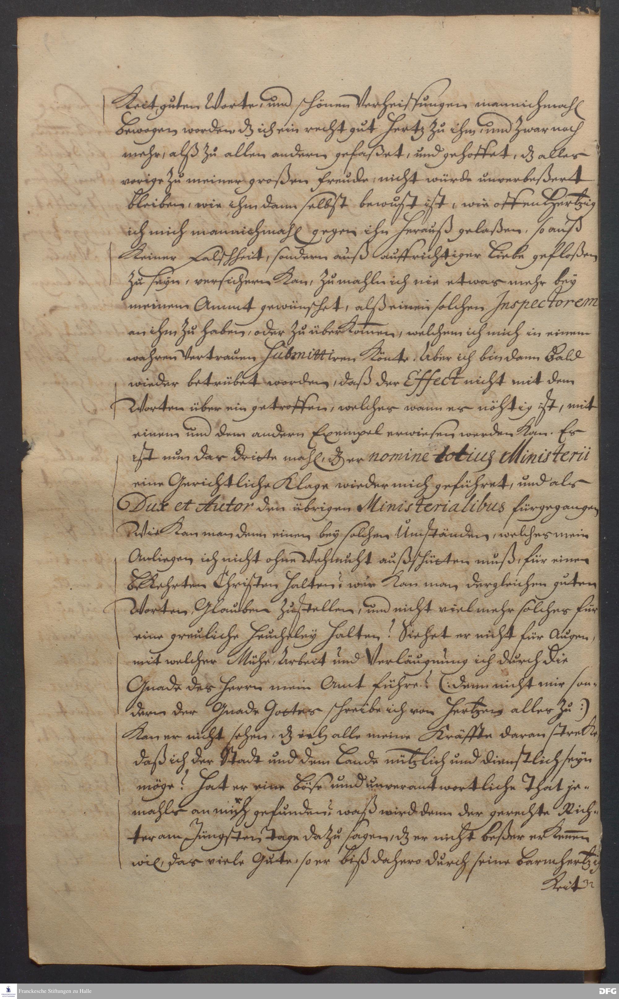 Brief von August Hermann Francke an die kurfürstlich brandenburgische Regierung und das Konsistorium Magdeburg.