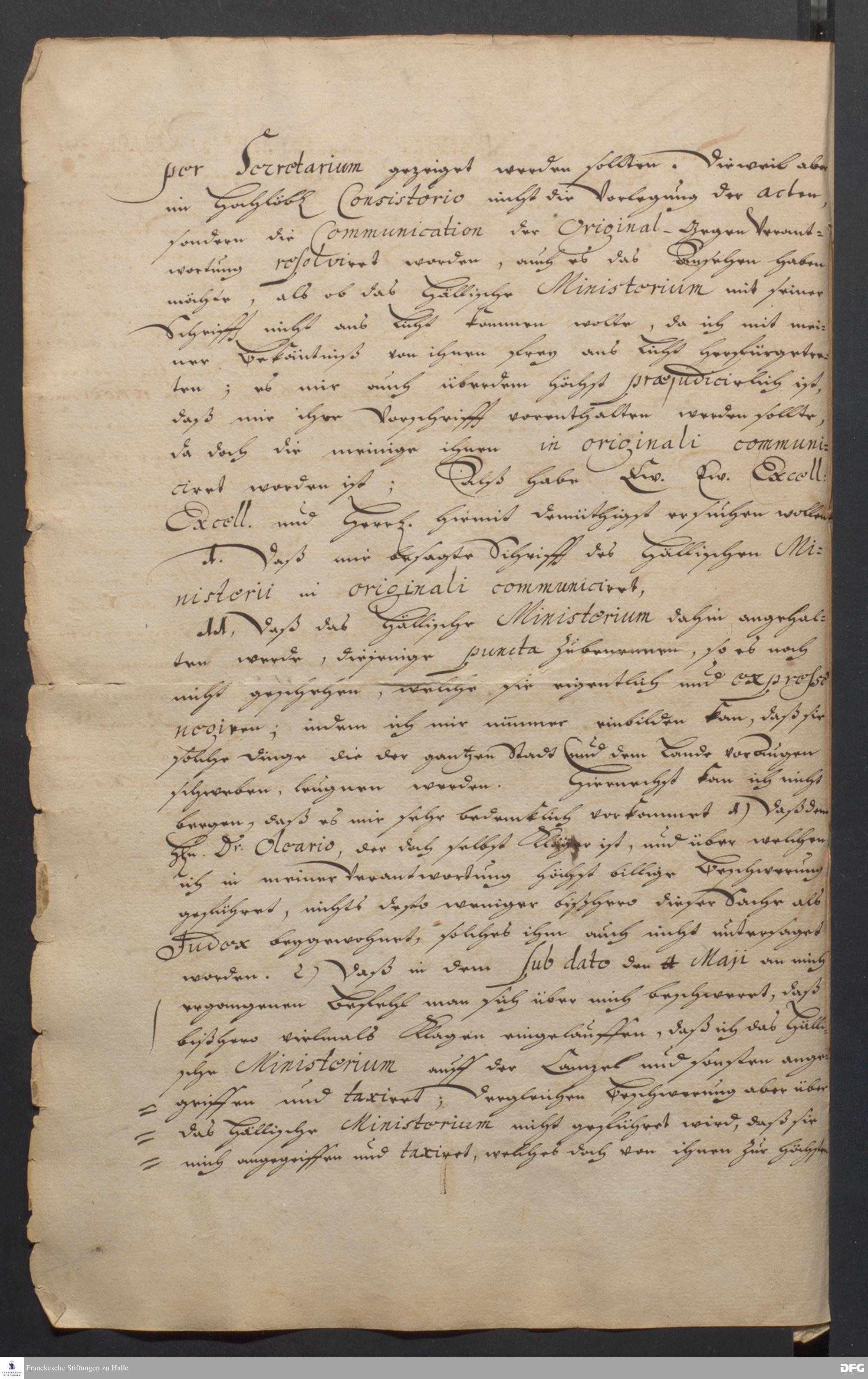 Brief von August Hermann Francke an die kurfürstlich brandenburgische Regierung und das Konsistorium Magdeburg.