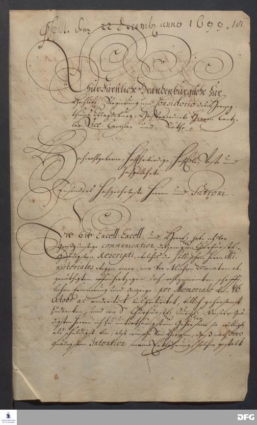 Brief von August Hermann Francke an die kurfürstlich brandenburgische Regierung und das Konsistorium Magdeburg.