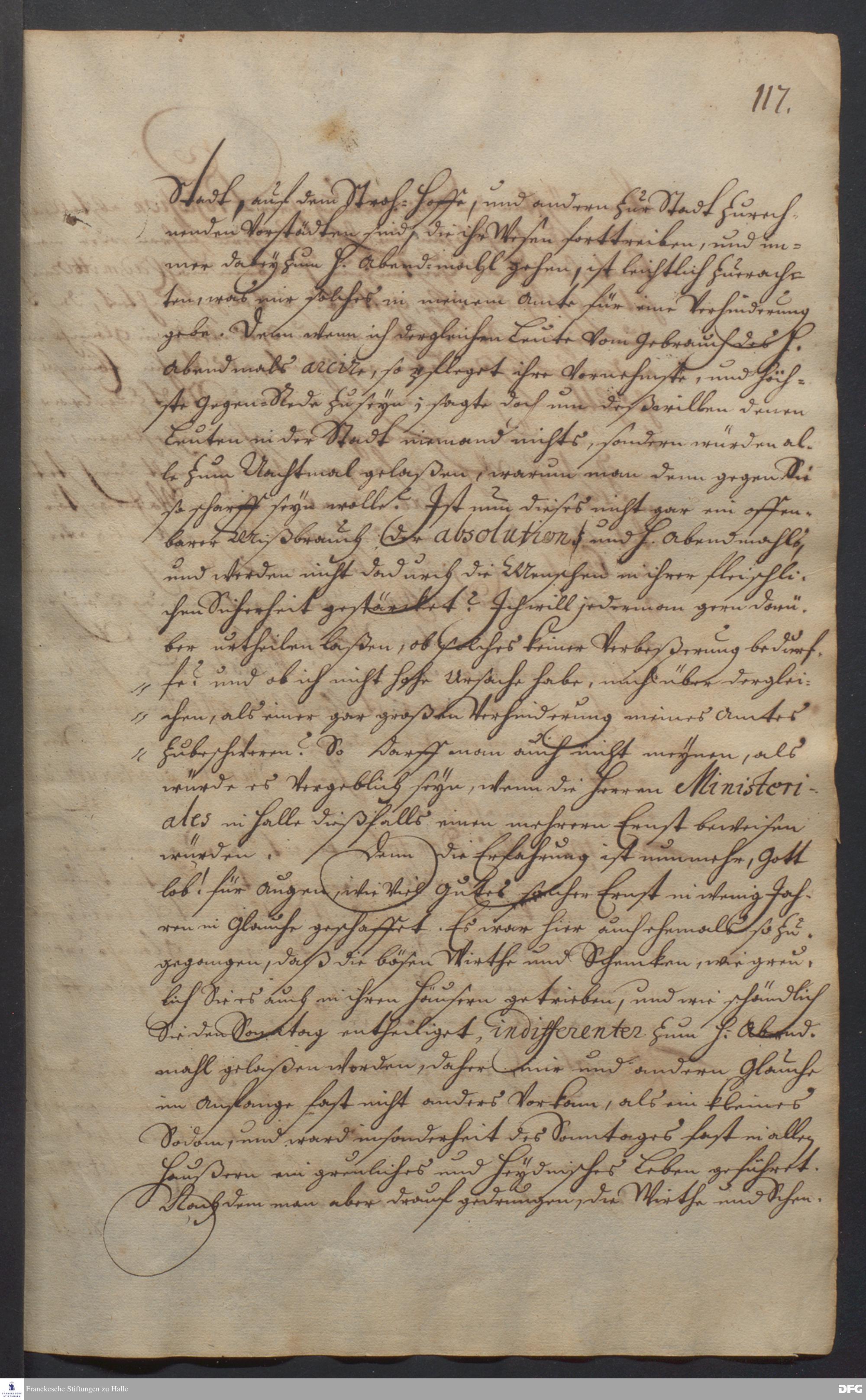 Brief von August Hermann Francke an die kurfürstlich brandenburgische Regierung und das Konsistorium Magdeburg.