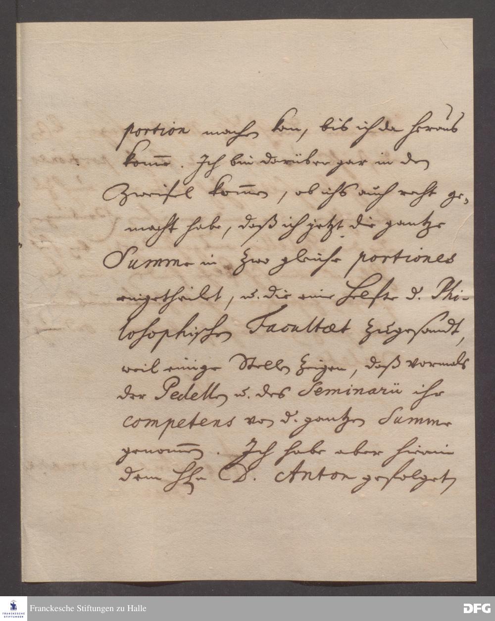 Brief von August Hermann Francke an die Professoren der Theologischen Fakultät.