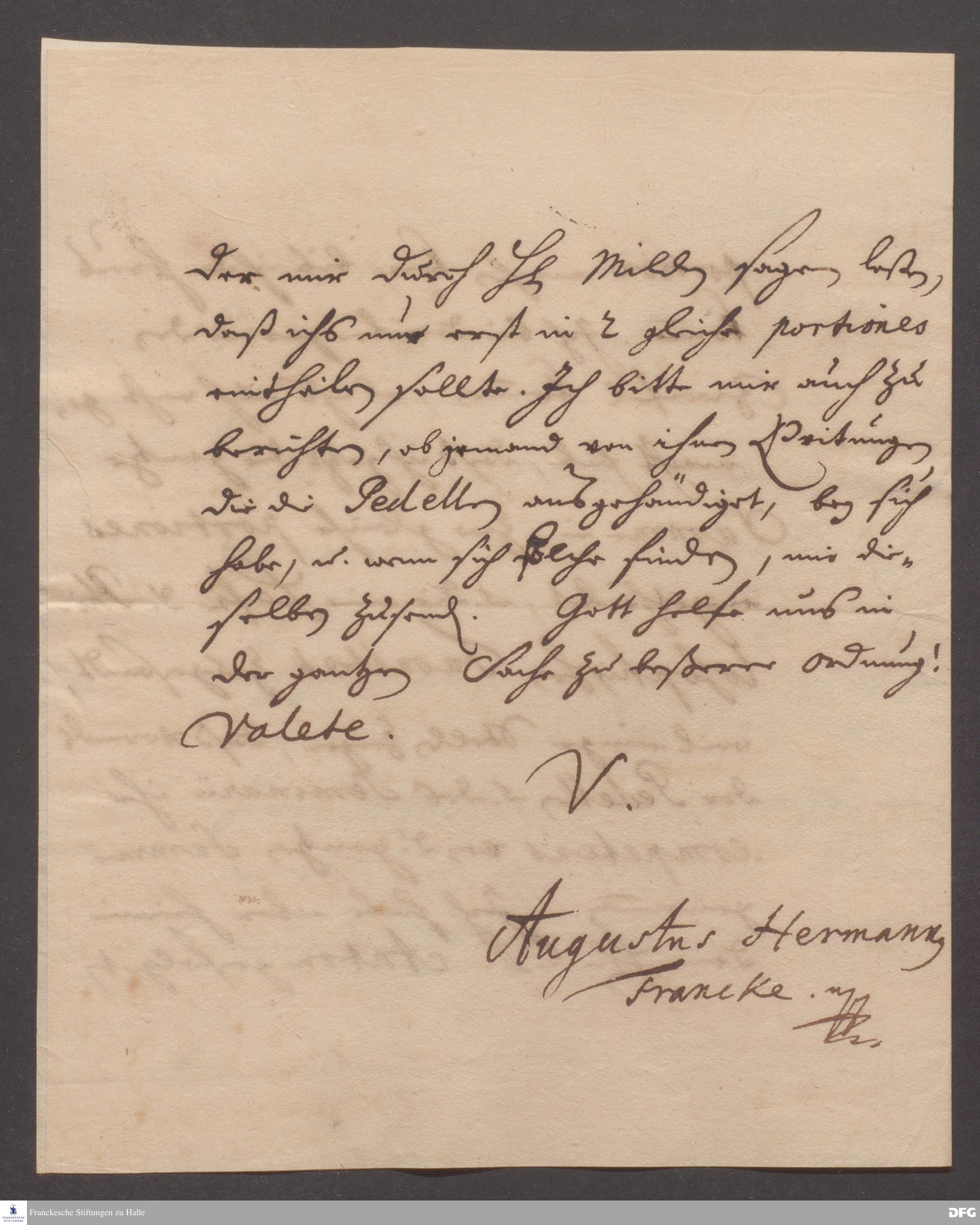 Brief von August Hermann Francke an die Professoren der Theologischen Fakultät.