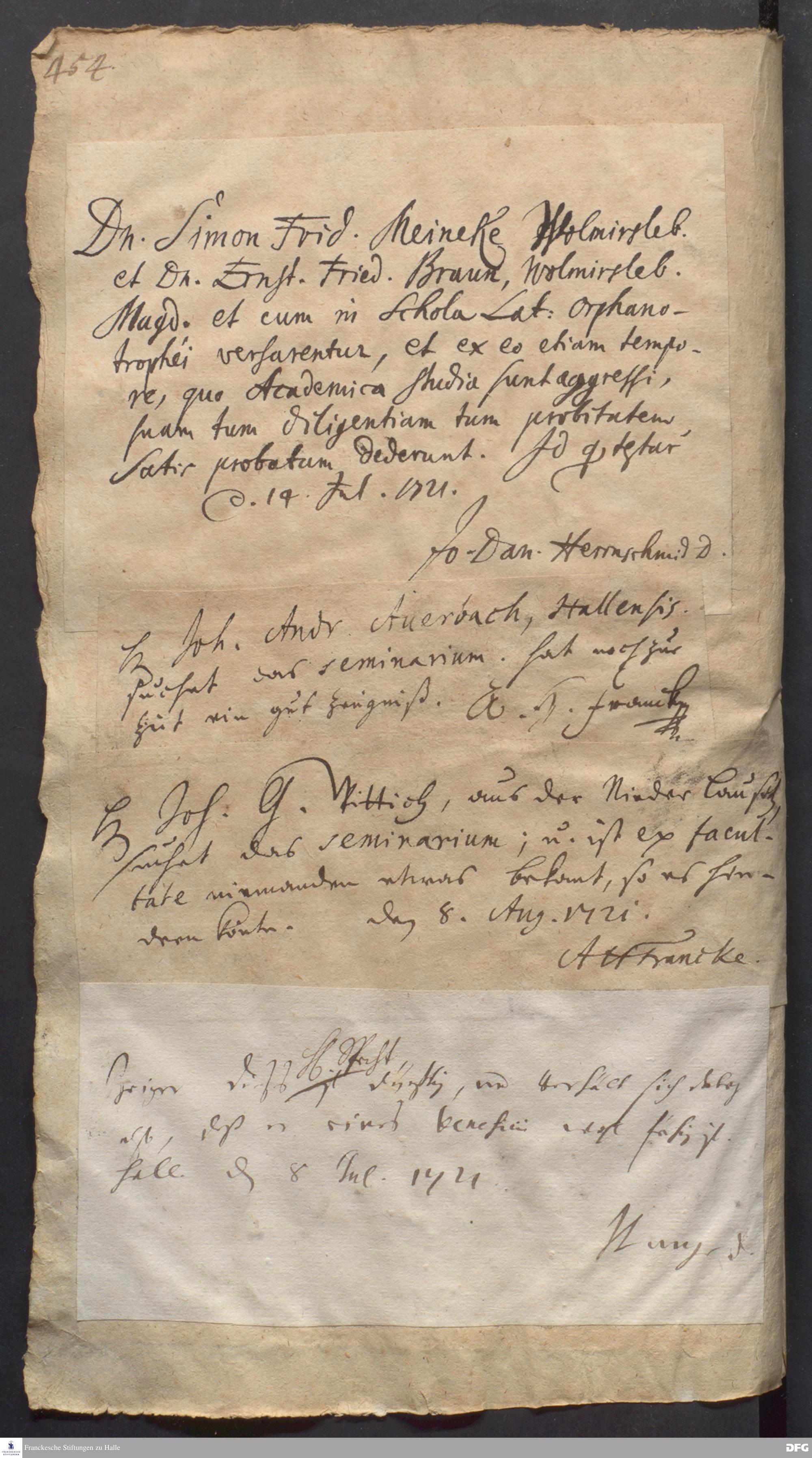 Testimonium von August Hermann Francke für Johann Georg Wittich.